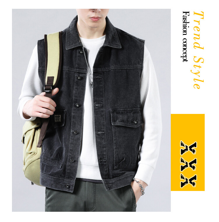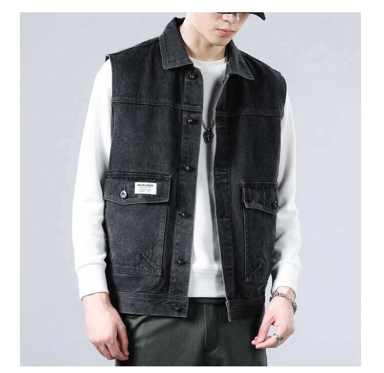 デニムベスト ベスト Gジャン 前開きベスト ノースリーブ デニム ユニセックス 重ね着 袖なし ビッグポケット ストリート ゆったり