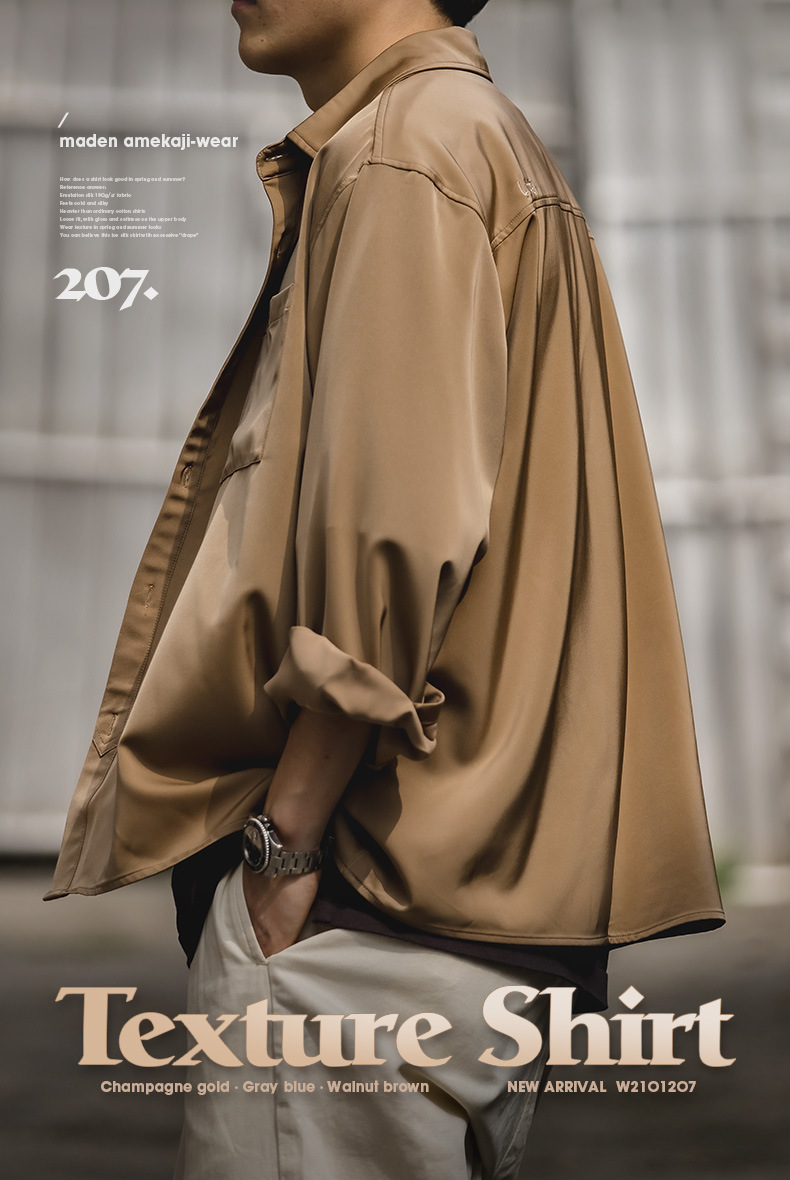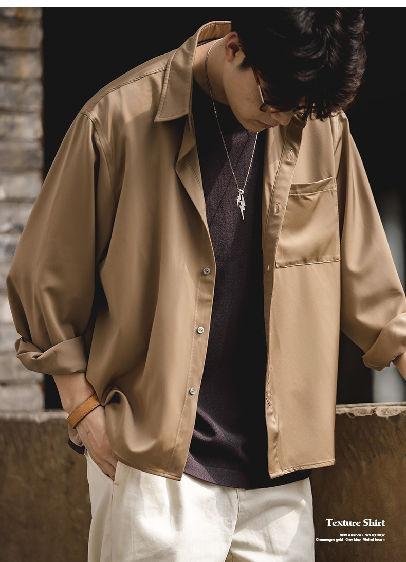 カジュアルシャツ サテン ツヤ メンズ 長袖 シャツ トップス 羽織り メンズファッション シルク 無地 リラックススタイル ひんやり