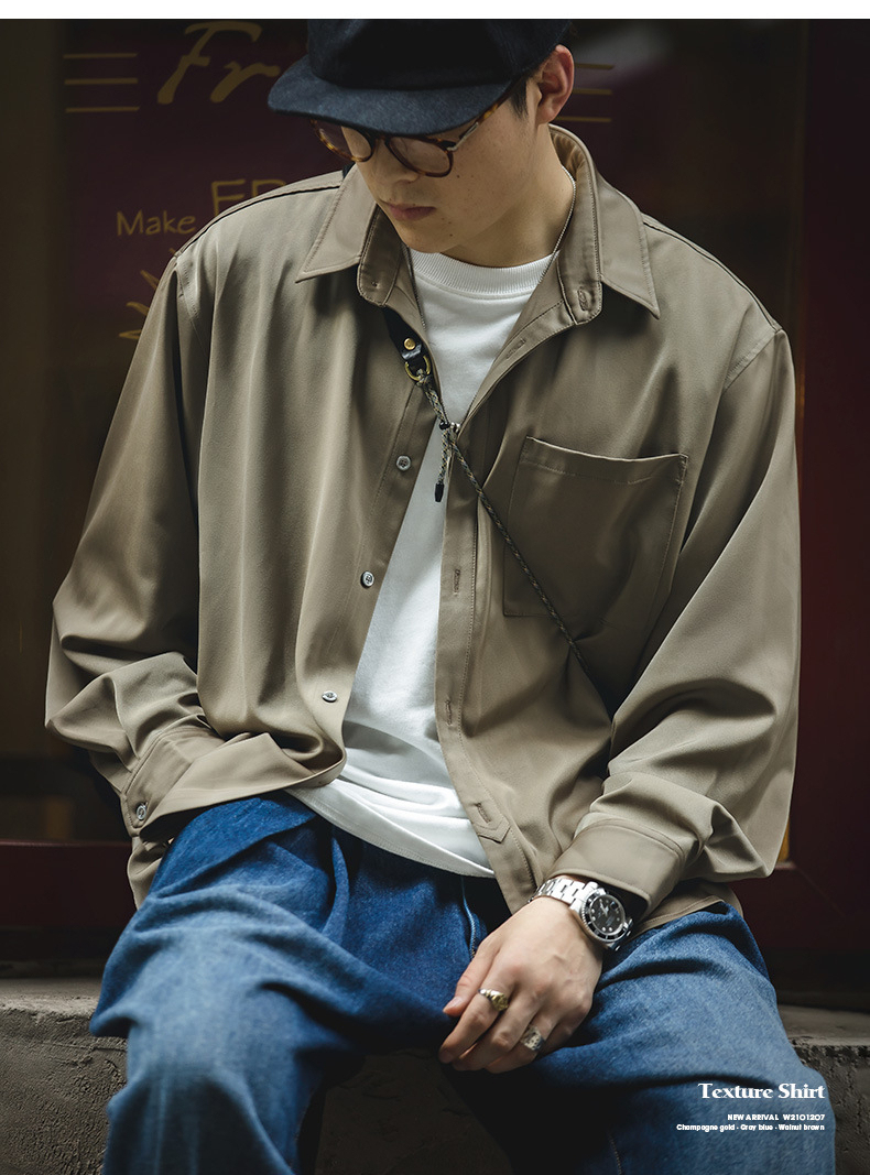 カジュアルシャツ サテン ツヤ メンズ 長袖 シャツ 無地 シルク ひんやり リラックススタイル メンズファッション トップス 羽織り