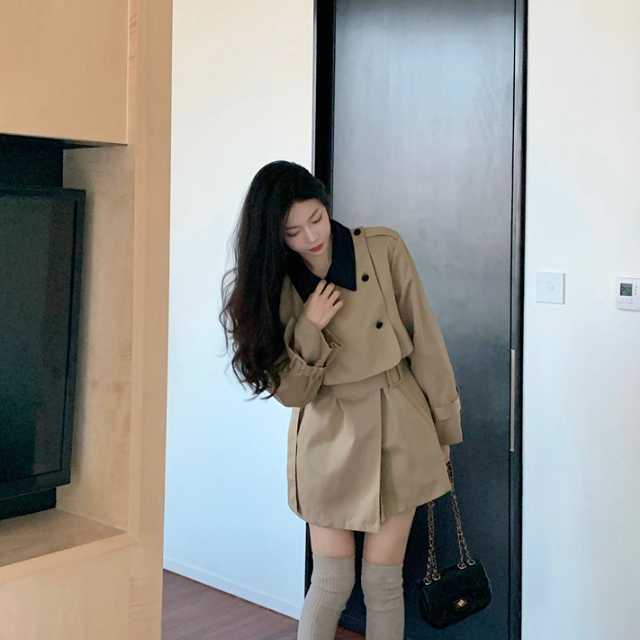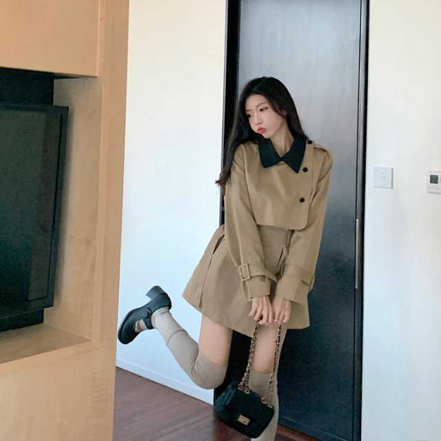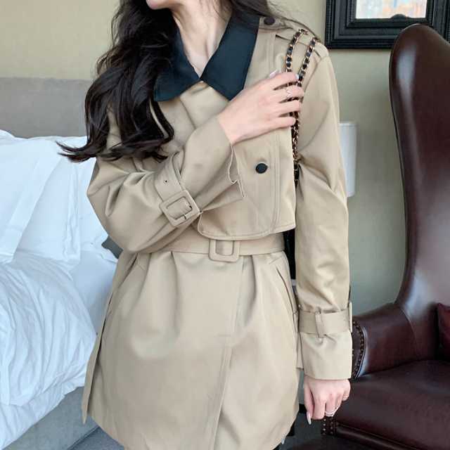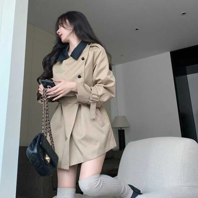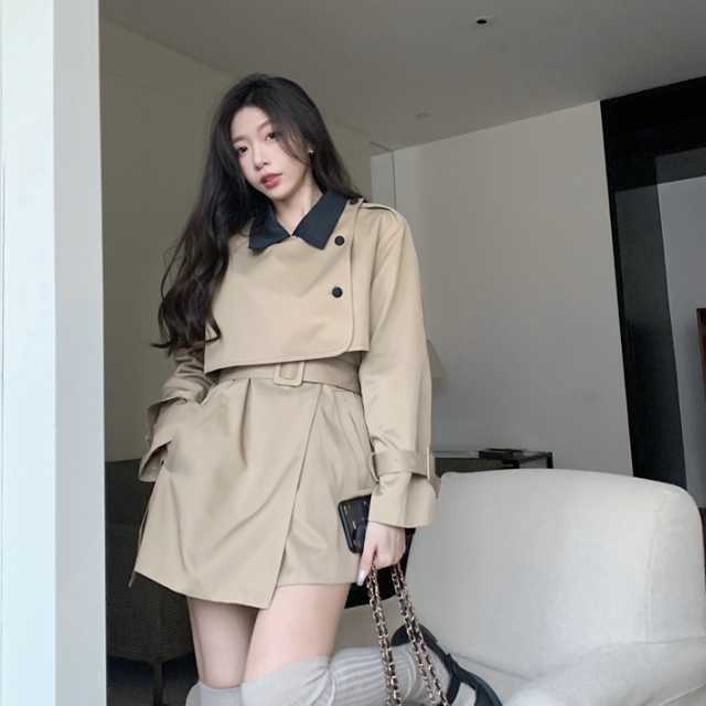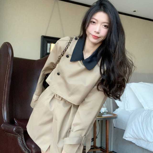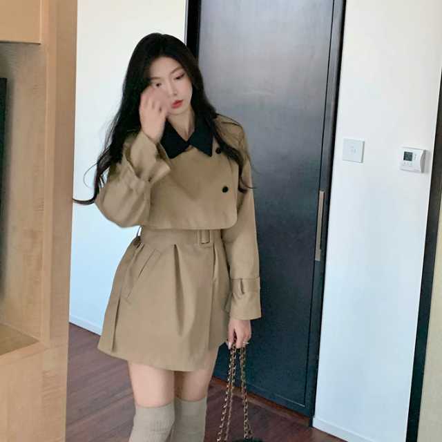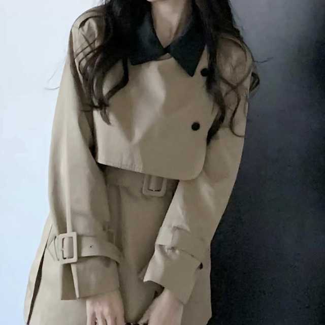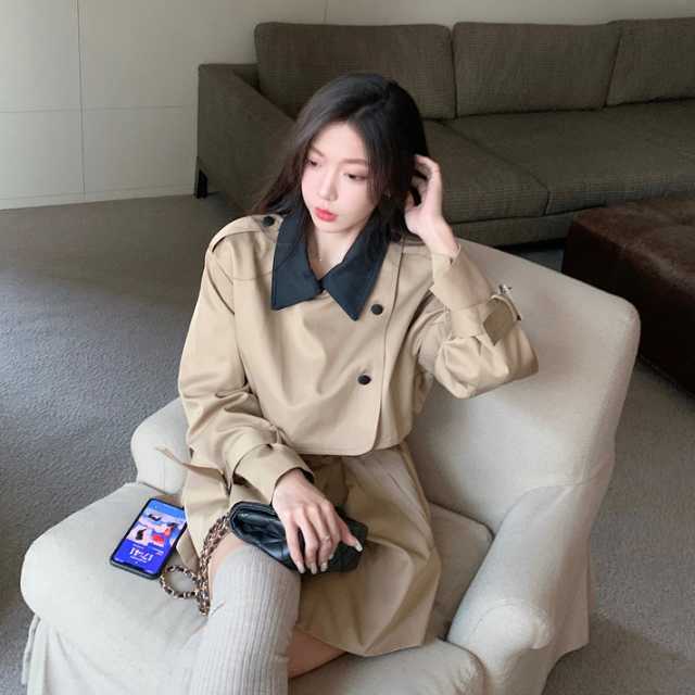 ミニワンピースのようなデザインが大人かわいいバイカラーのトレンチコート♪