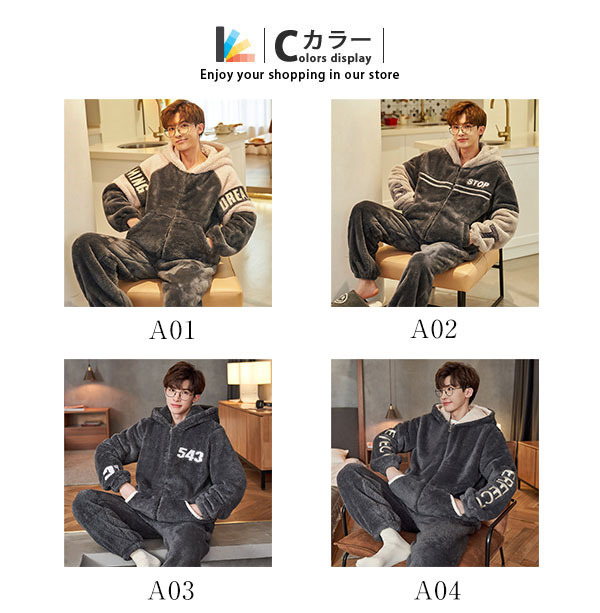 ルームウェア パジャマ 厚手 メンズ 冬用 長袖 暖かい ふわふわ 部屋着 冬 セットアップ 上下セット あったか 男性 ふわもこ もこもこ 寝間