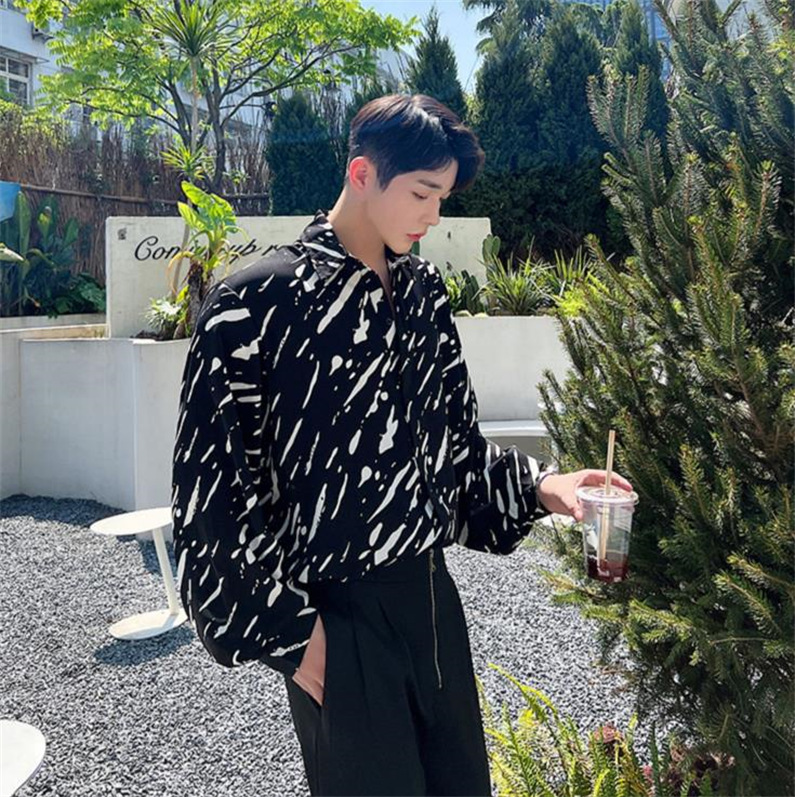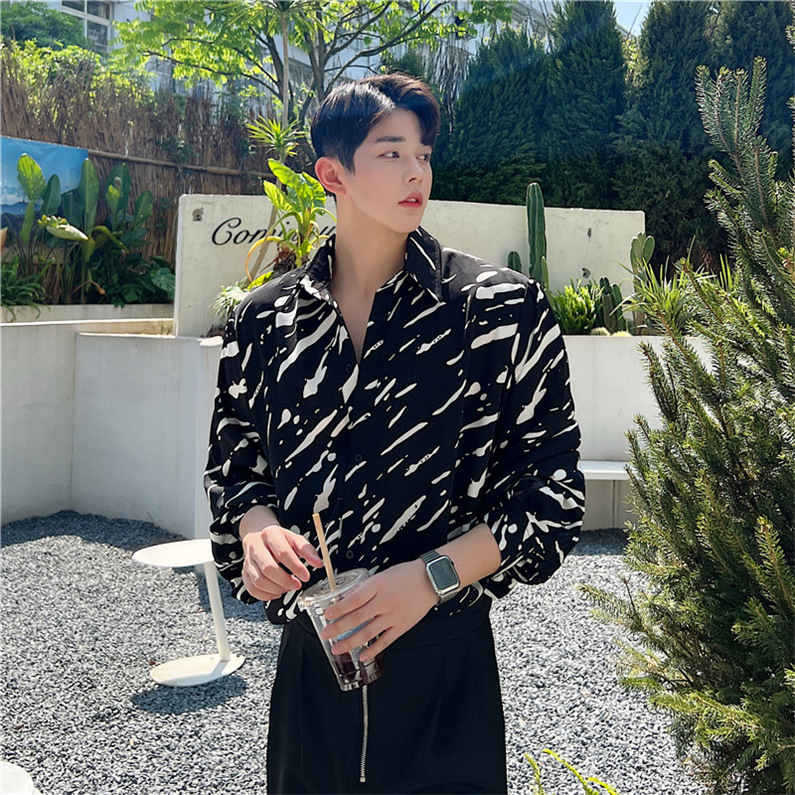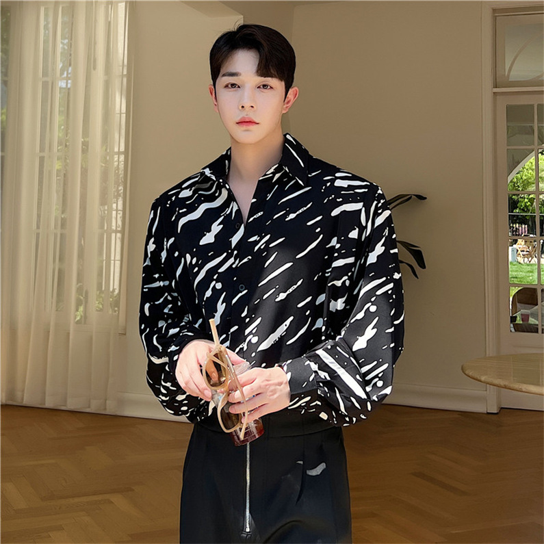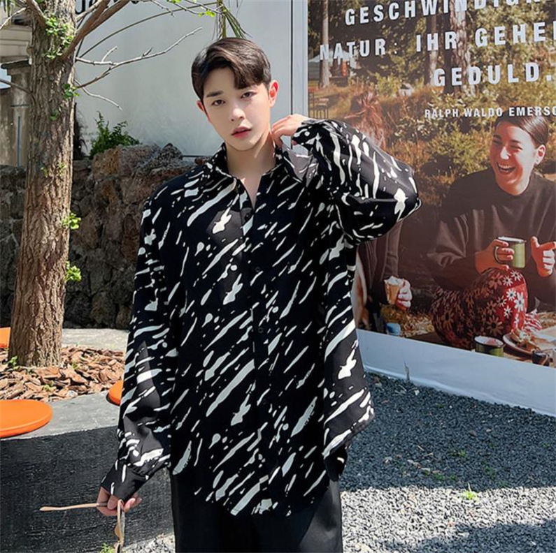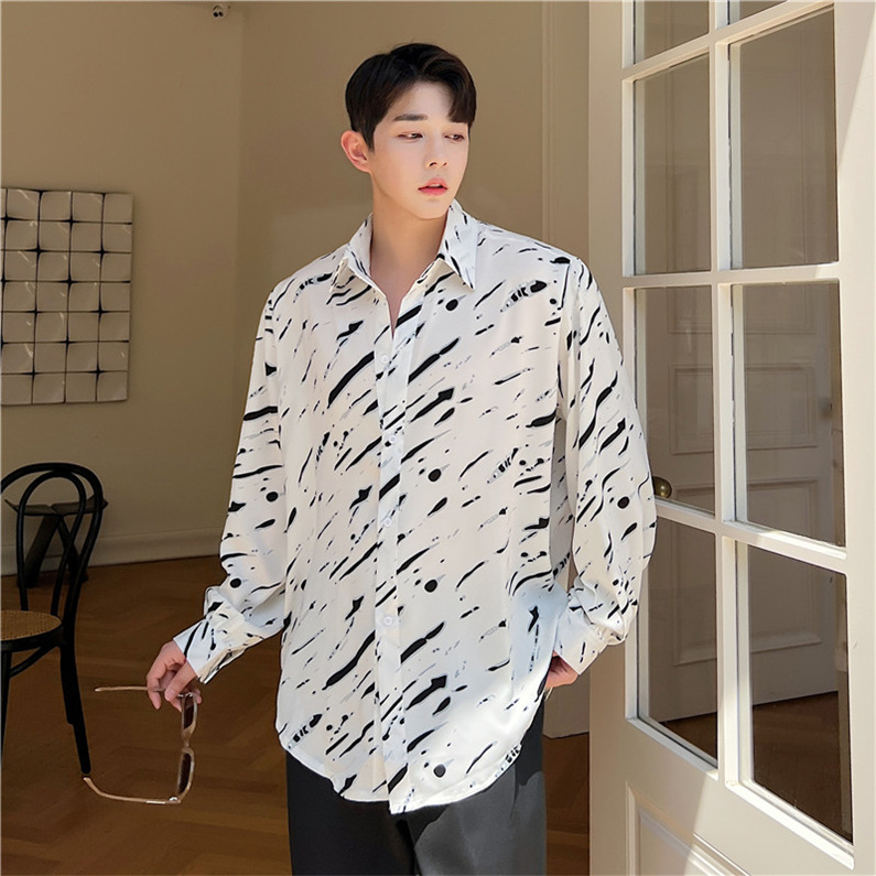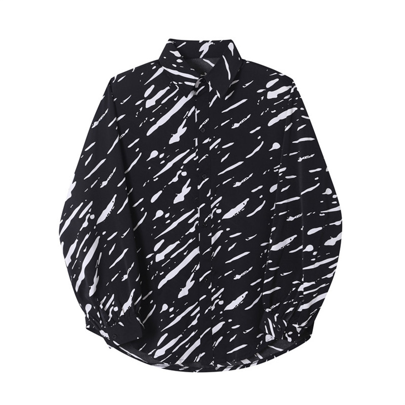 メンズ シャツ カジュアルシャツ 長袖 白黒 ワーク 男子トップス スタイリッシュ ダンスウェア 公演 上着 クラブ アロハシャツ ゆったり 発表会 春秋 柄物