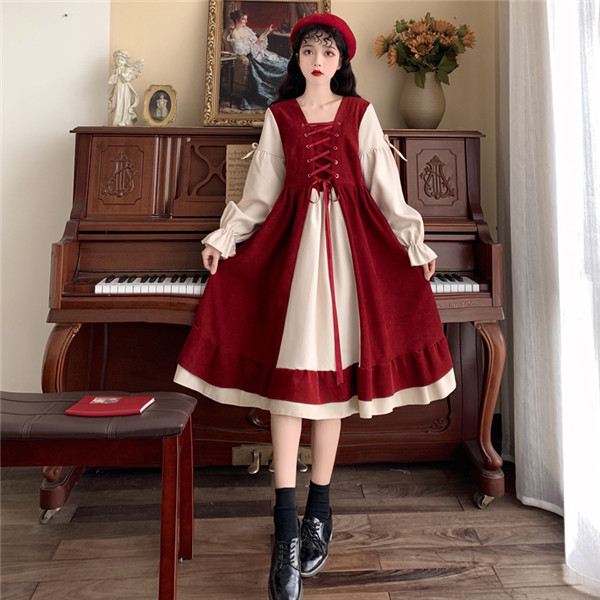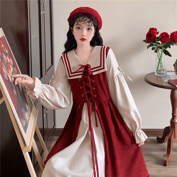 サイズ有りM L XL 2XL 3XL 4XL 長袖 ワンピース 制服 コスチューム JK服 2COLOR 女子高生 スクールウェア 学園祭 文化祭 レディース 秋冬制服 学院風 ロリータ 可愛いコスプレ ハロウィンZBZB