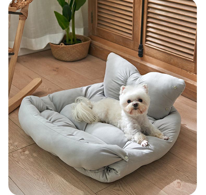 ひとつで3役!ベッドとマット、枕付き、スナップボタンで簡単にカタチが変えられるペット用クッション。