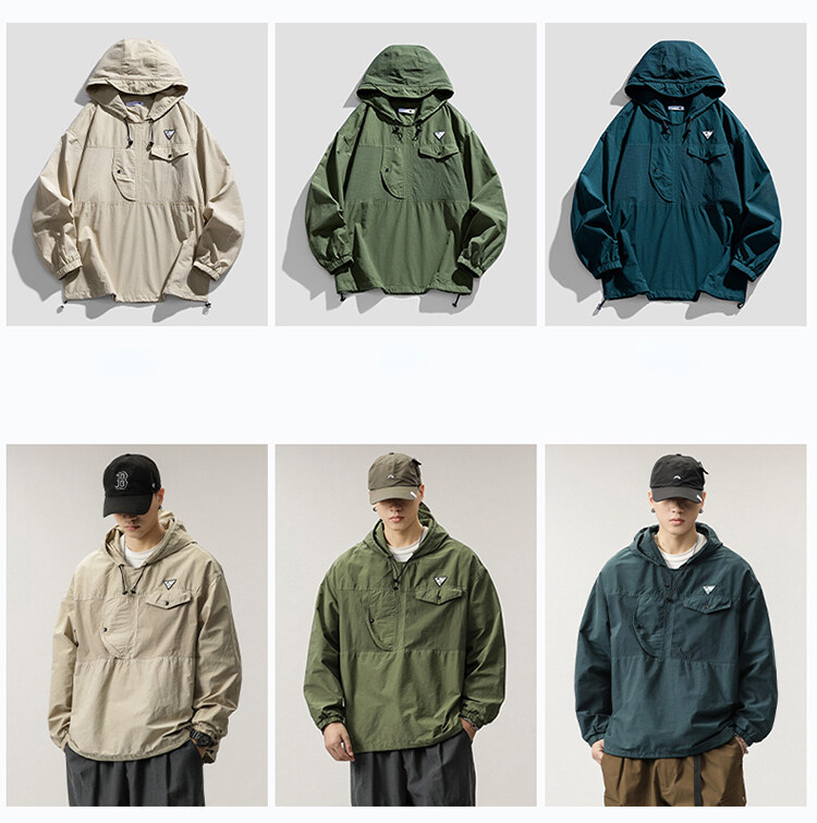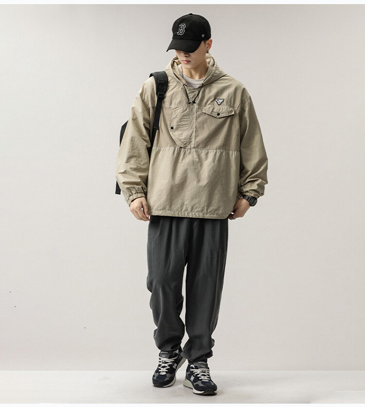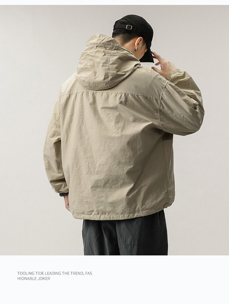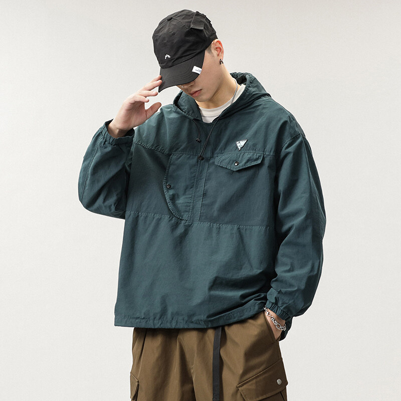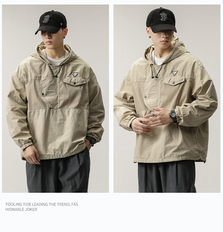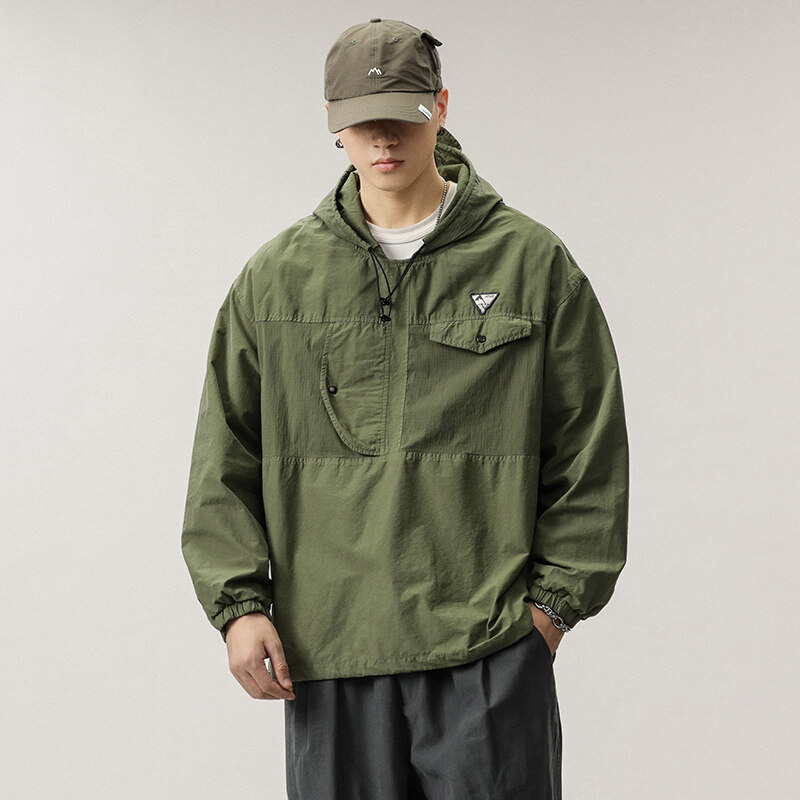 ミリタリージャケット メンズ ドロップショルダー アメカジ ストリート フード付き ゆったり プルオーバーパーカー かっこいい ジャケット 男性