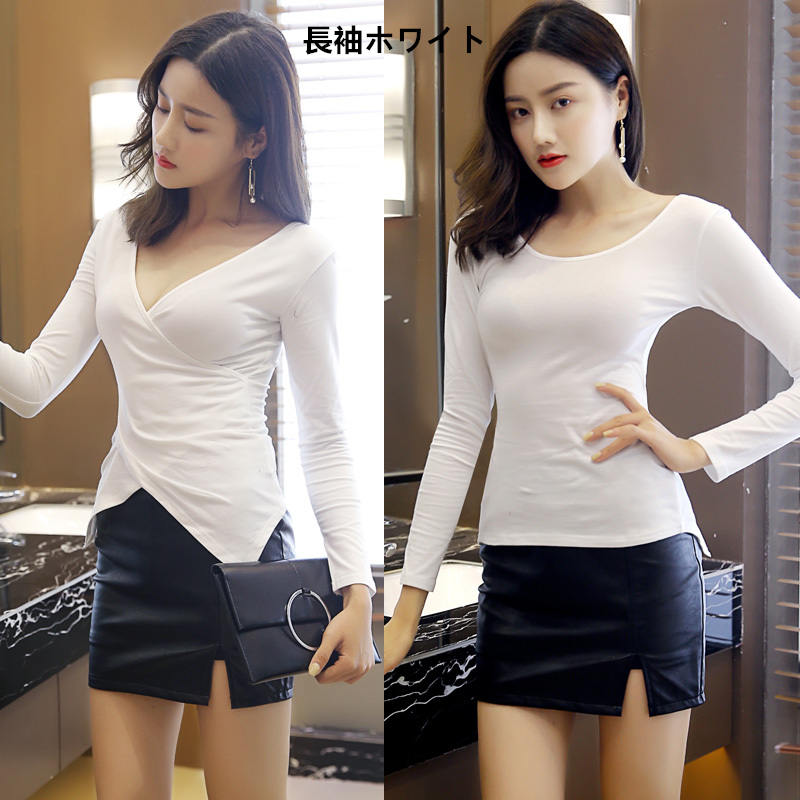 Tシャツ レディース 半袖 長袖 4カラー S-4XL 大きいサイズ対応 前面背面どちらも着れる Vネック クールネック ヒョウ柄 トップス コットン アンダーシャツ ラウンドネック おしゃれ