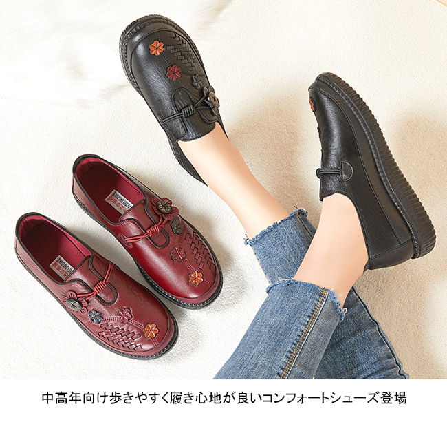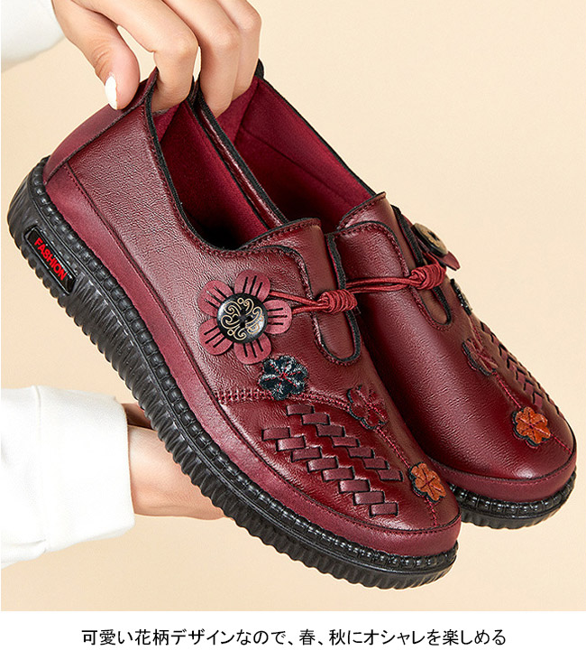 コンフォートシューズ レディース シューズ 中高年 柔らかい底 滑り止め 花柄 滑りにくい 防滑 耐摩耗 柔らかい 伸縮性 健康高齢者用シューズ スリッポン 軽い オシャレ 快適 春秋