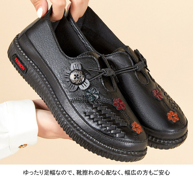 ゆったり足幅なので、靴擦れの心配なく、幅広の方もご安心!