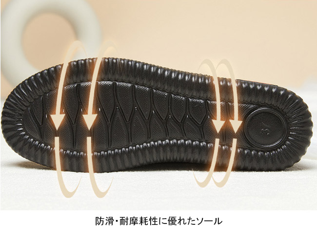 防滑性や耐磨耗性に優れたソールできていて滑りにくくより高い安全性を。し、