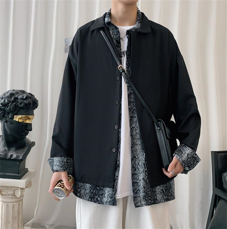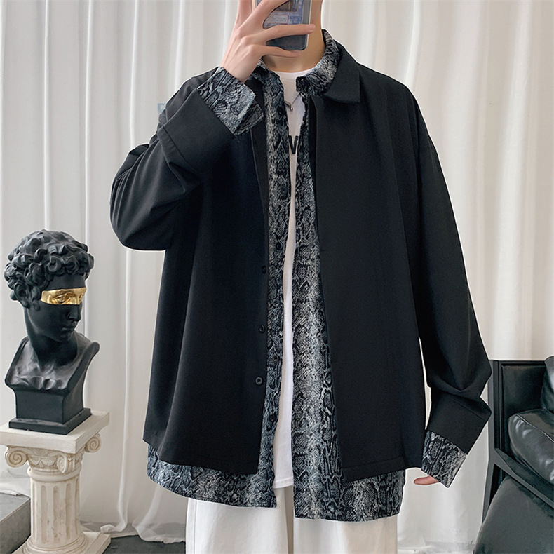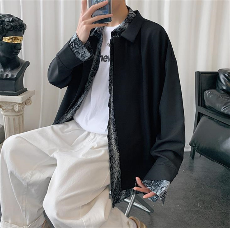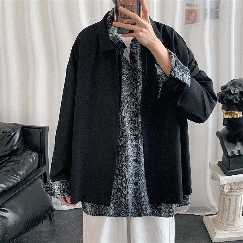 メンズ シャツ カジュアルシャツ 長袖 ワイシャツ ワーク 普段着 クール ゆったり 男子トップス ブラック ヒップホップ お出掛け 上着 ヒョウ柄 春秋