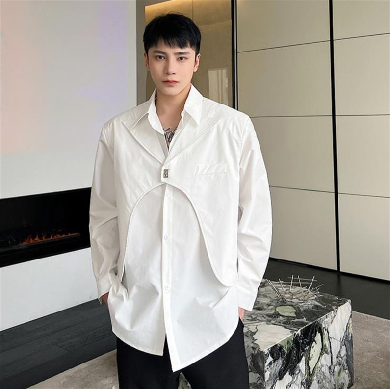 メンズ シャツ カジュアルシャツ 長袖 ブラック 白 パーティー 発表会 ダンスウェア 上着 公演 クラブ スタイリッシュ 春秋 ワイシャツ ワーク 男子トップス