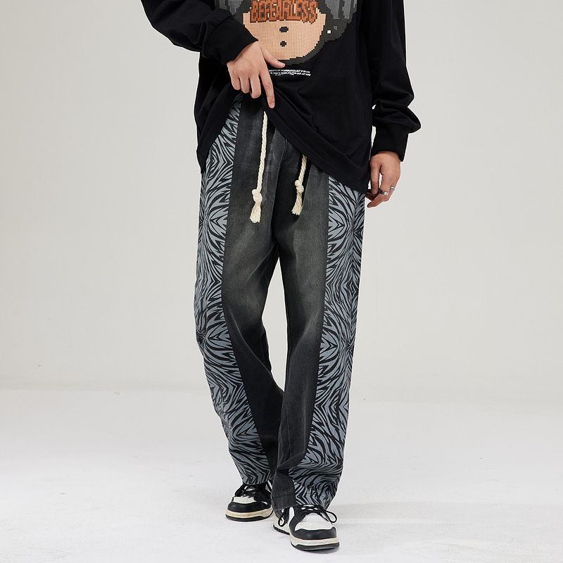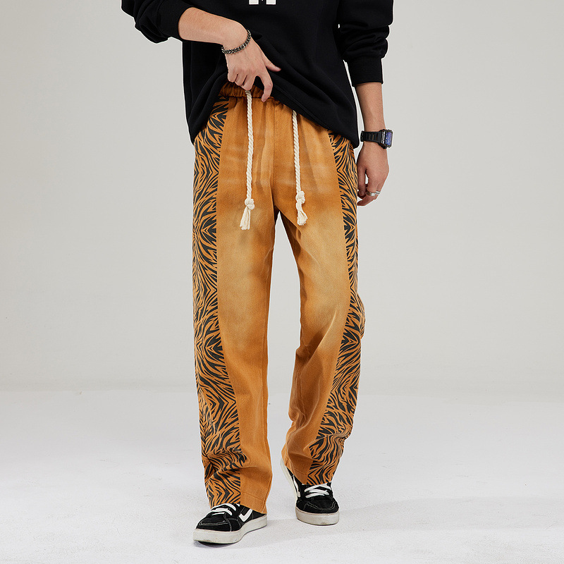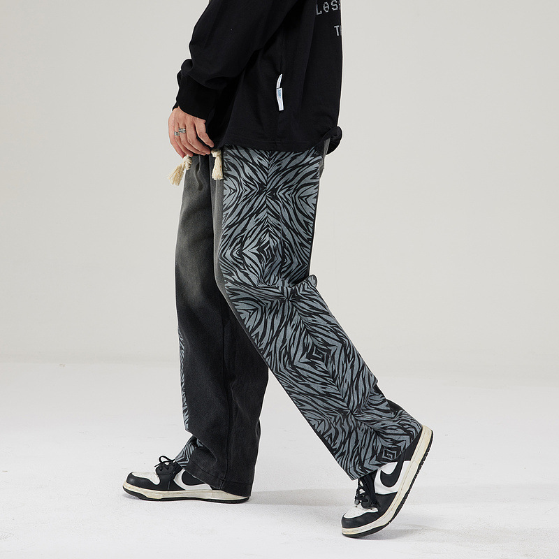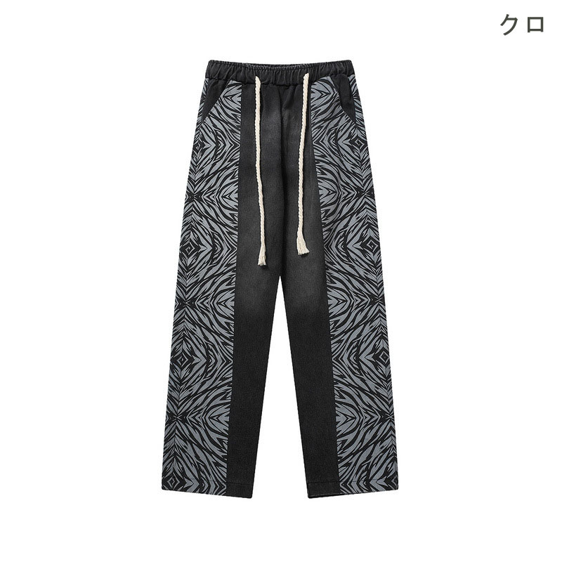 ゼブラ柄 幾何学模様 ライン ロングパンツ 韓国 ストリート 衣装 Y2K ダンス K-POP 原宿系 レディース HIPHOP