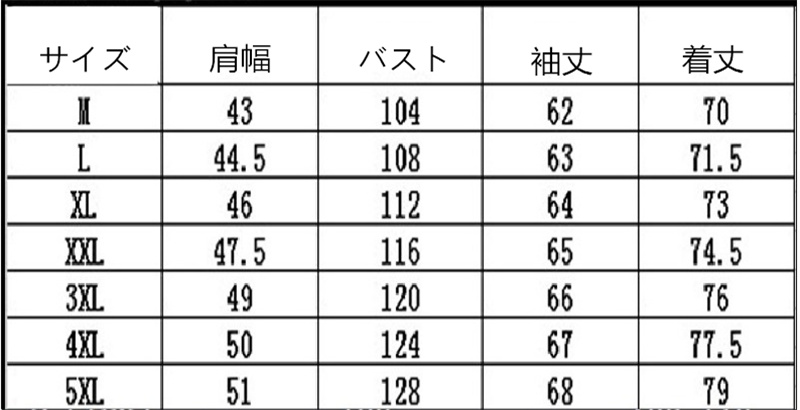 ◆サイズ(約CM):M、L、XL、2XL、3XL、4XL、5XL