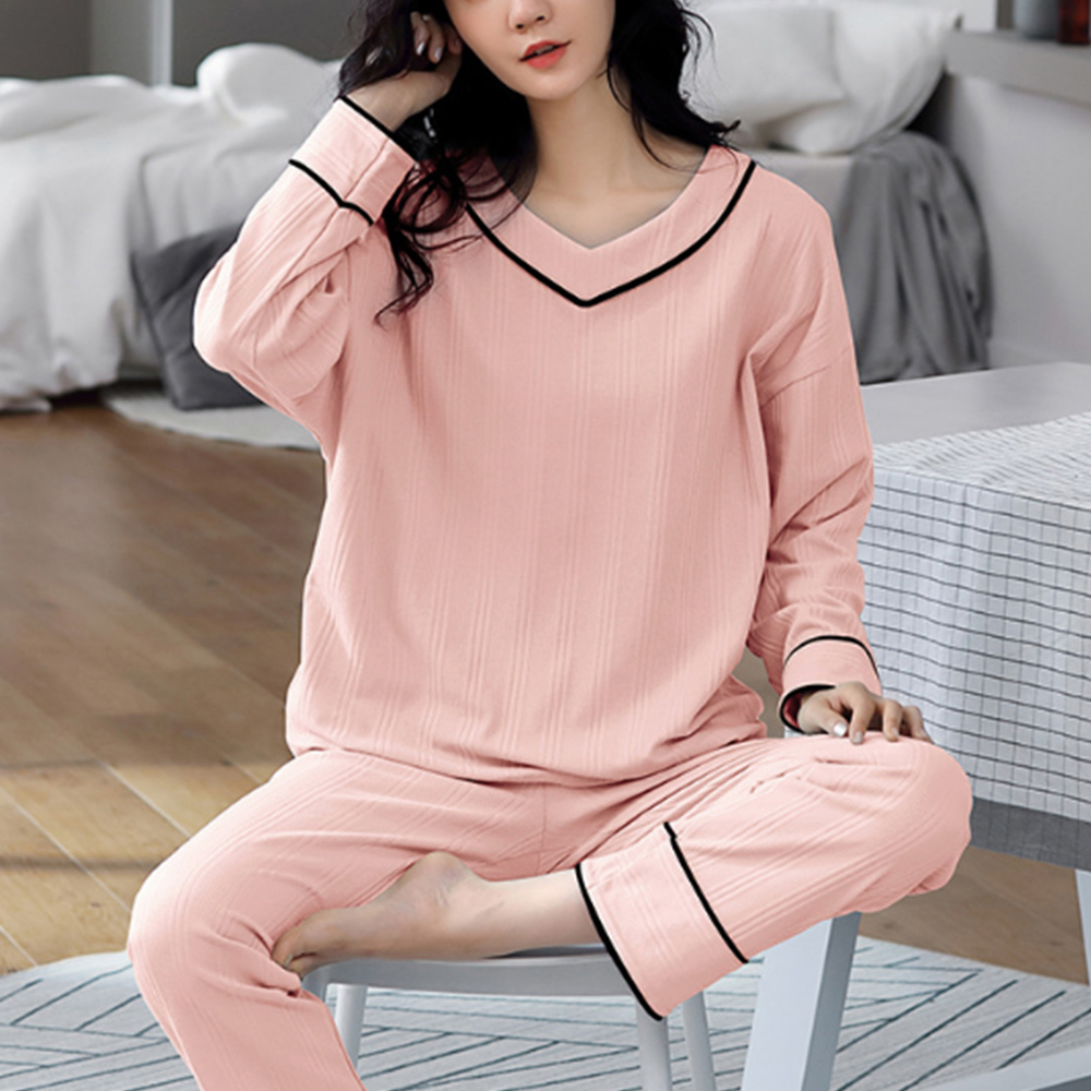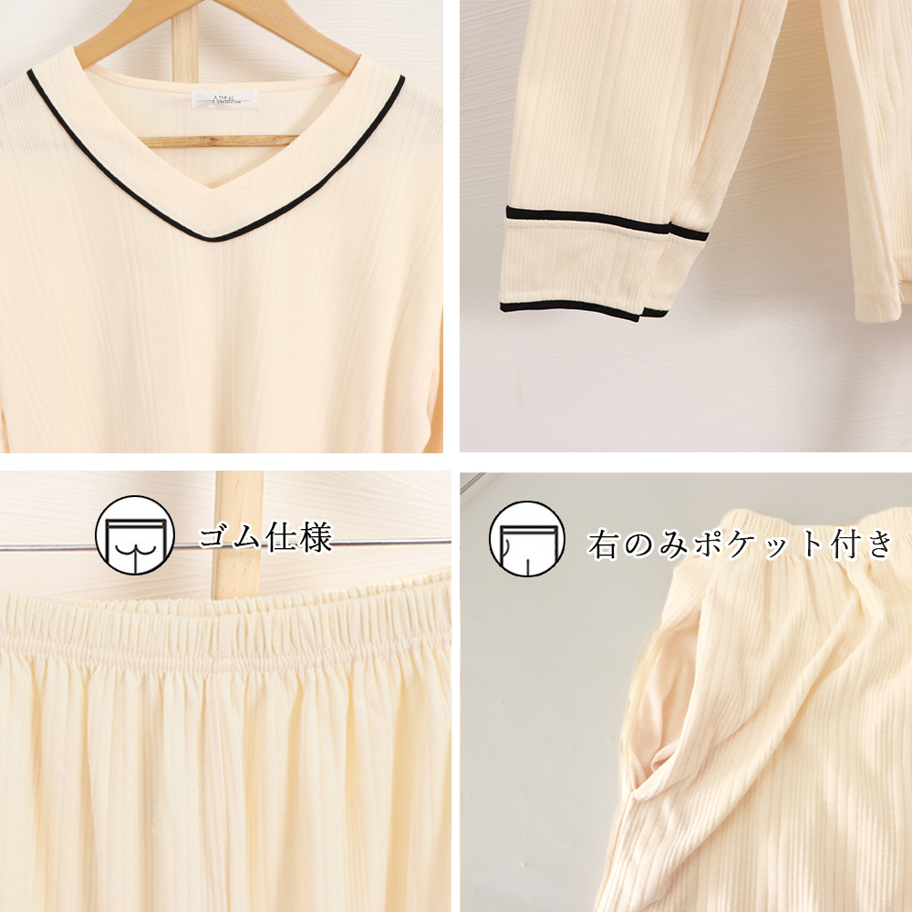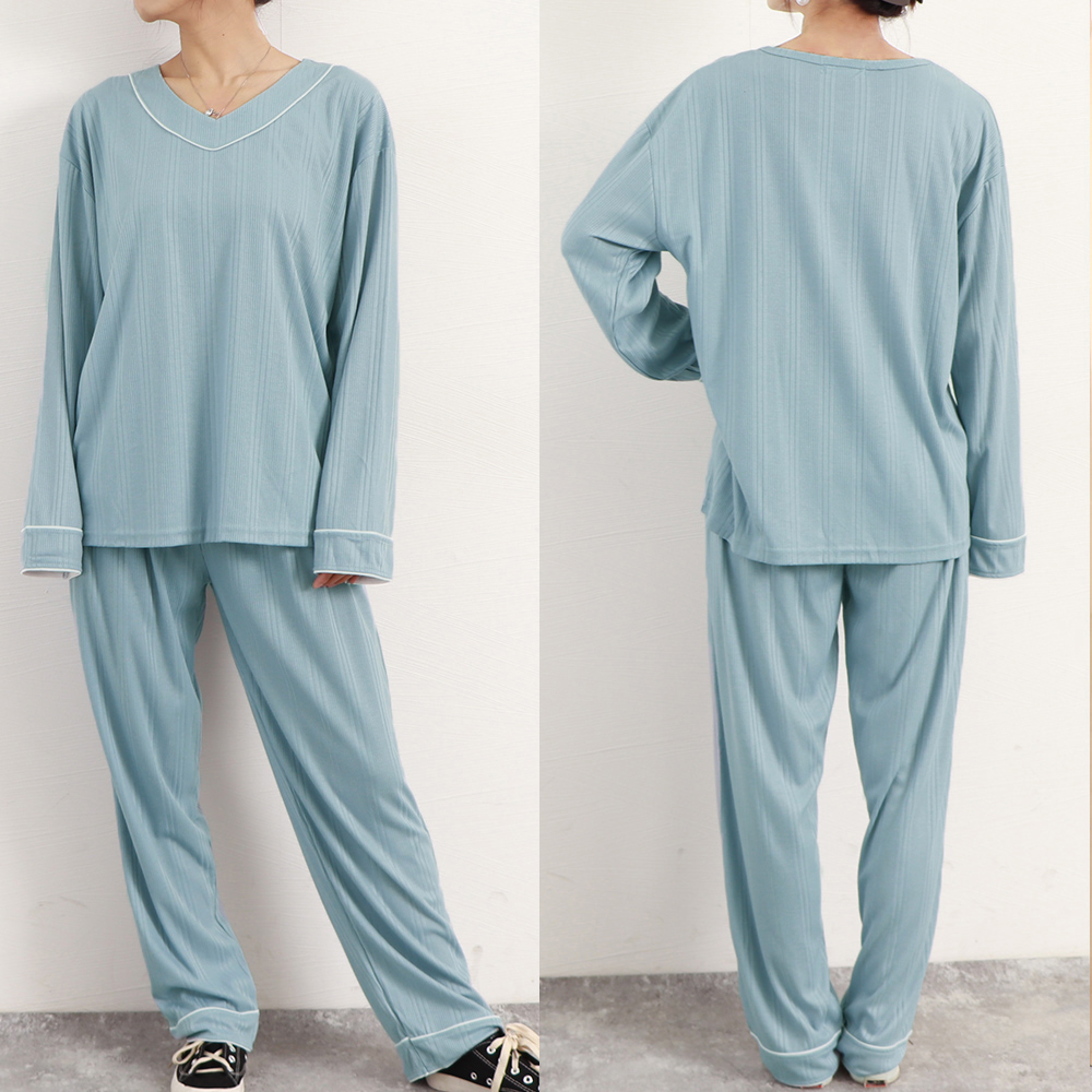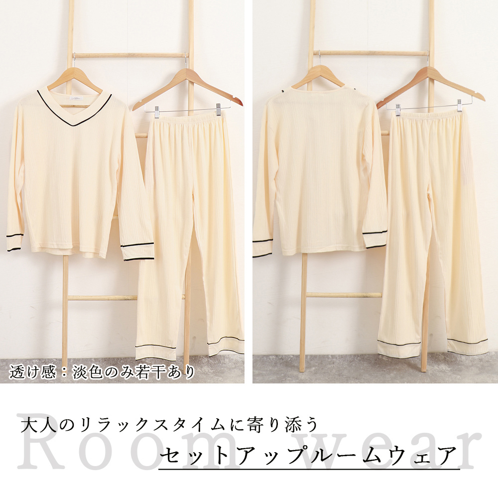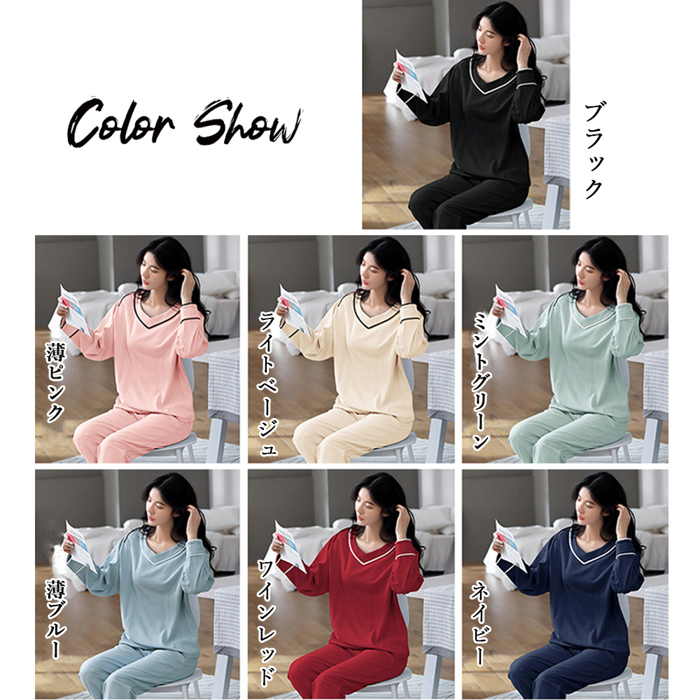 レディース パジャマ 大人 シンプル 部屋着 無地 トップス&パンツ セットアップ お泊り リラックス ナイトウェア秋冬