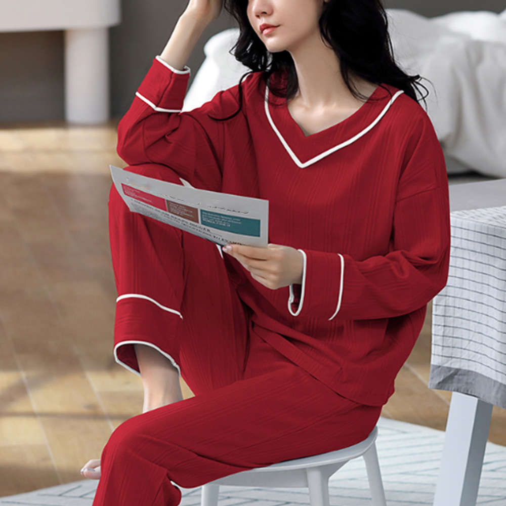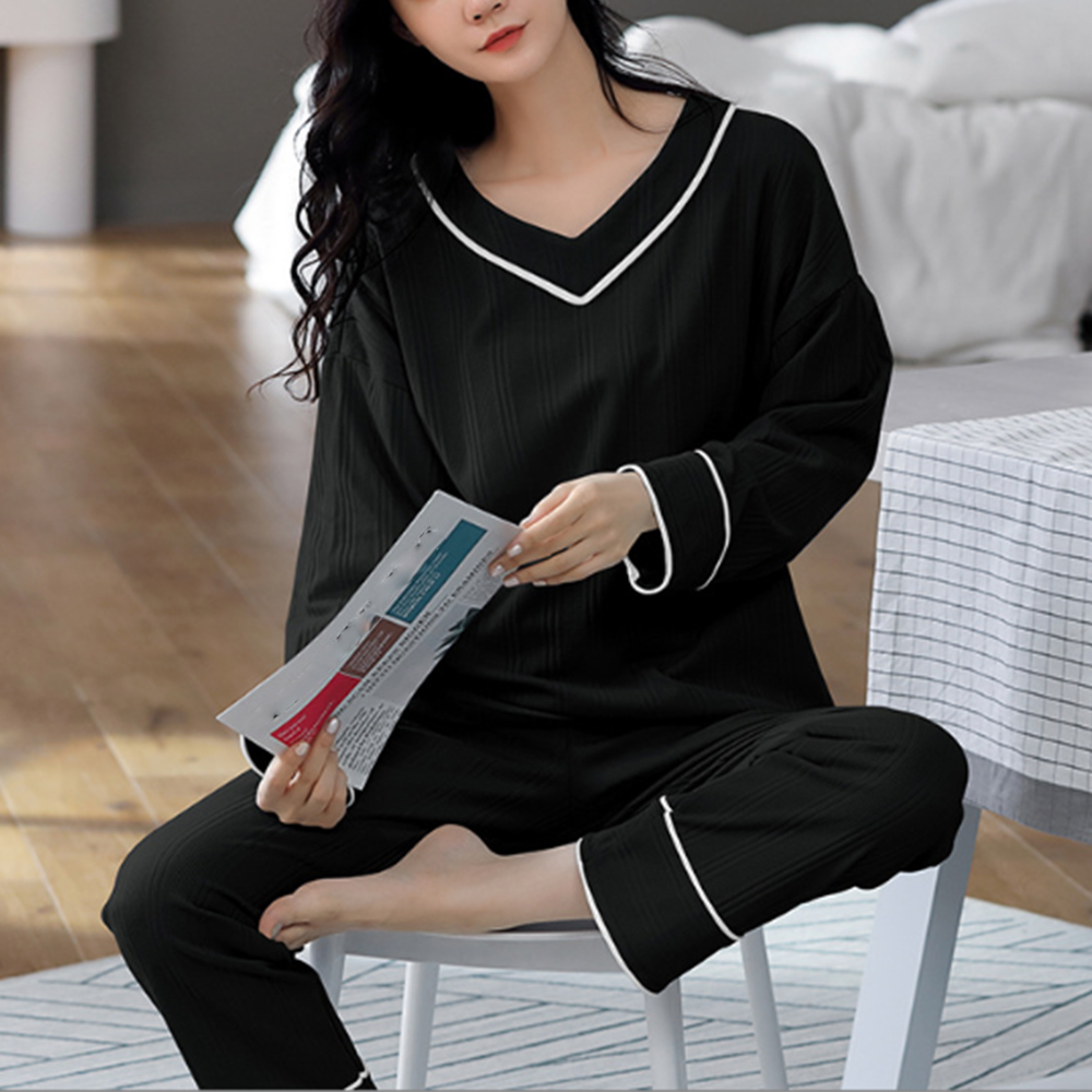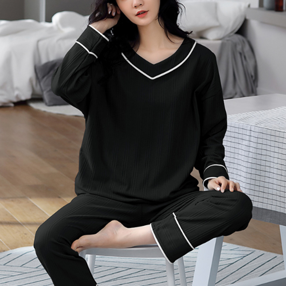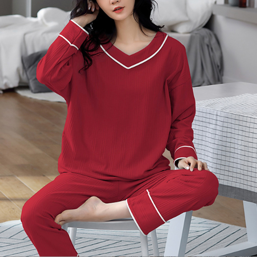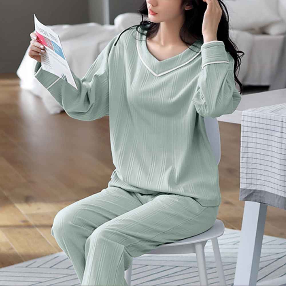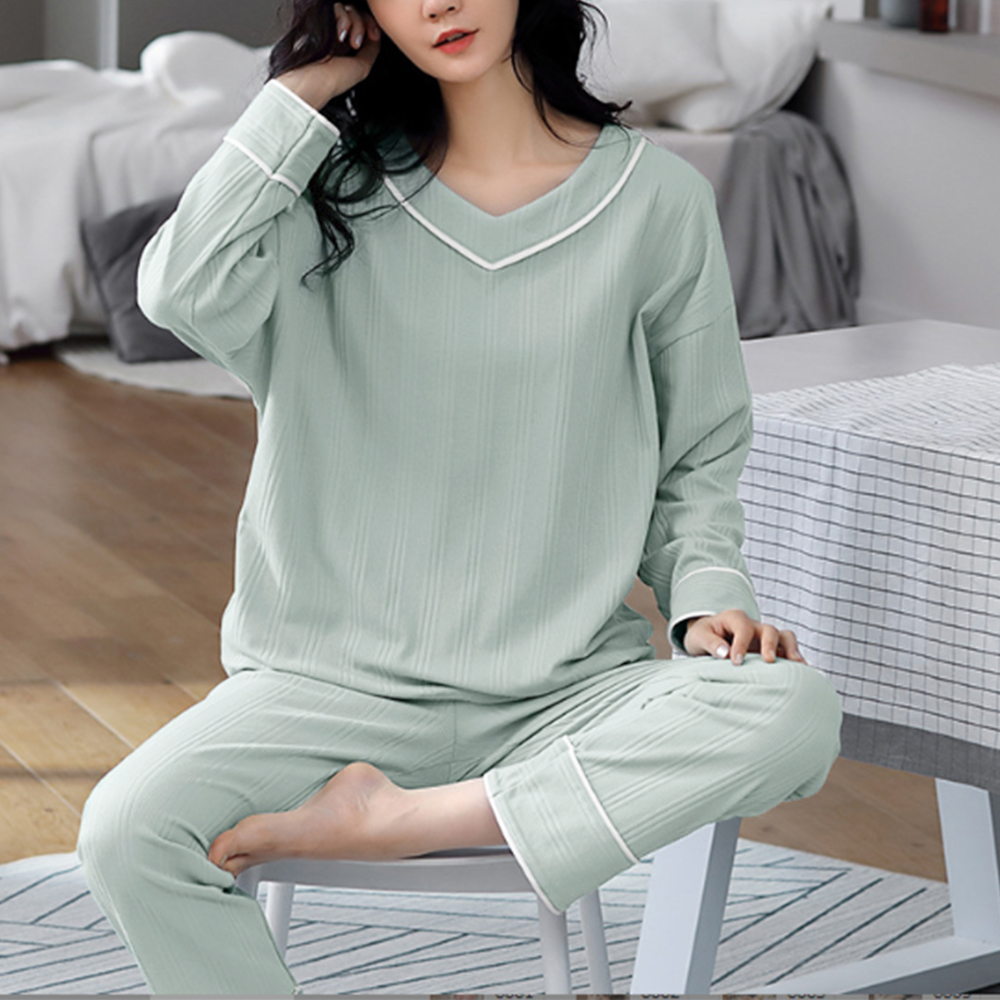 レディース パジャマ 大人 シンプル 部屋着 無地 トップス&パンツ セットアップ お泊り リラックス ナイトウェア秋冬