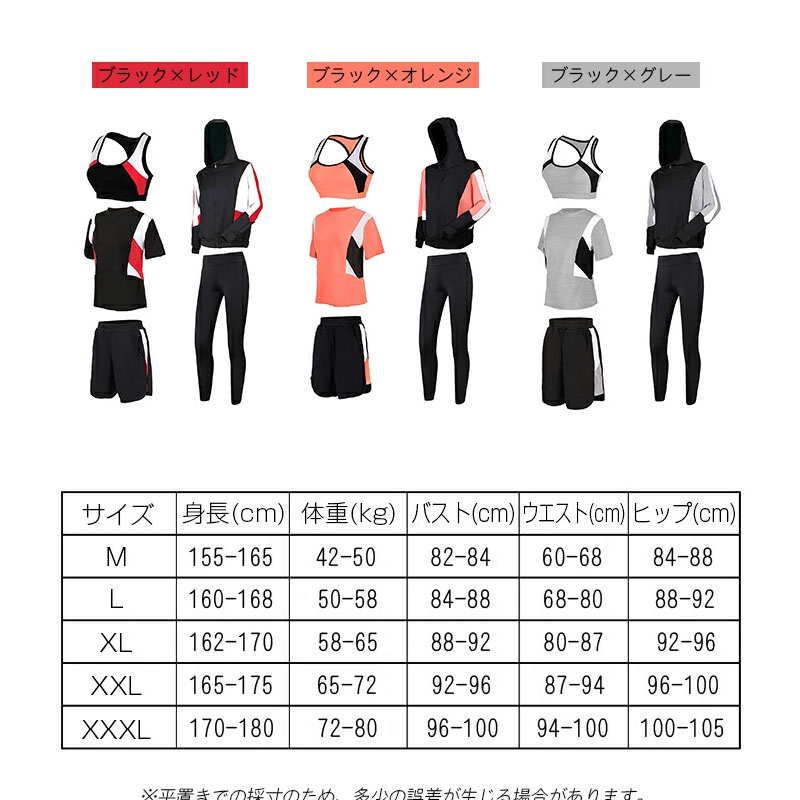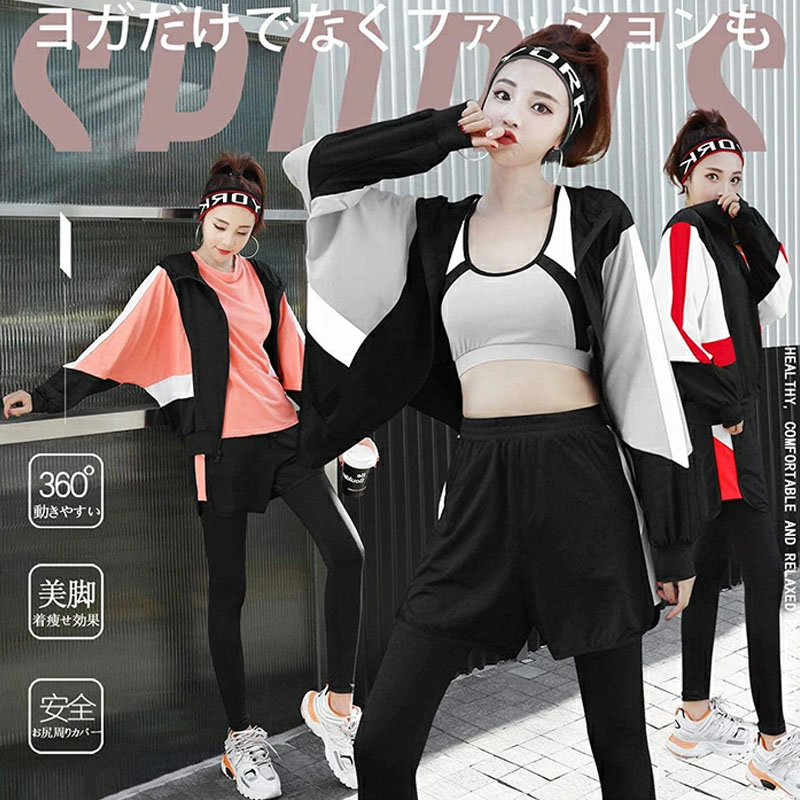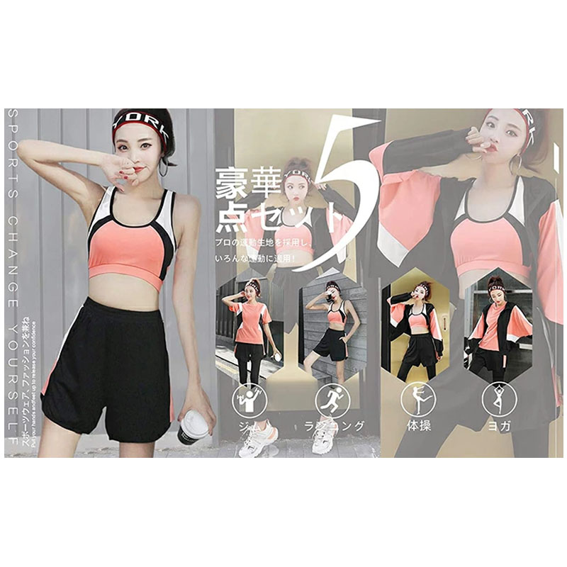 セット内容 半袖、短パンツ、長パンツ、スポーツブラ、パーカー