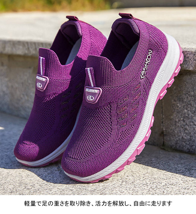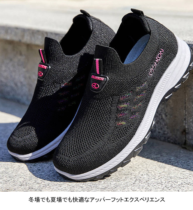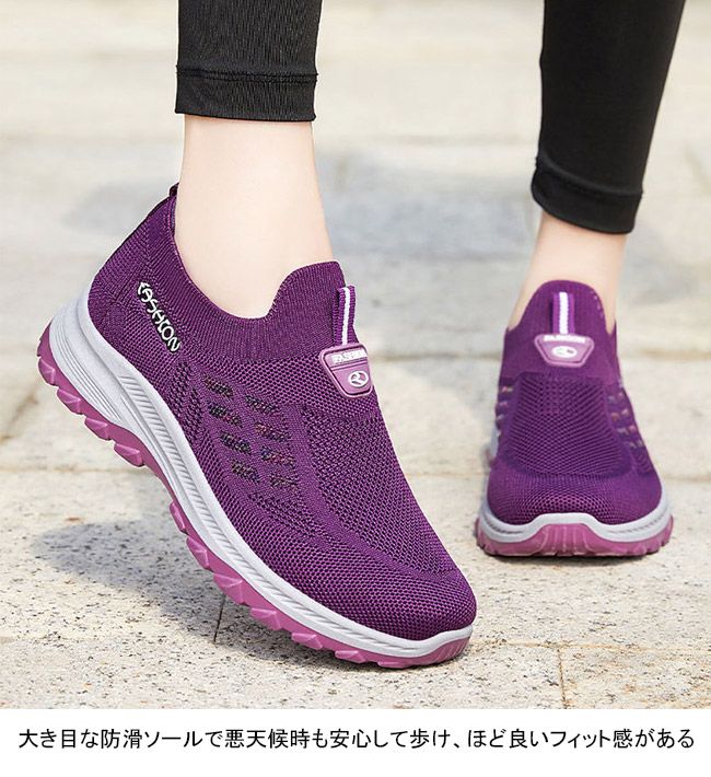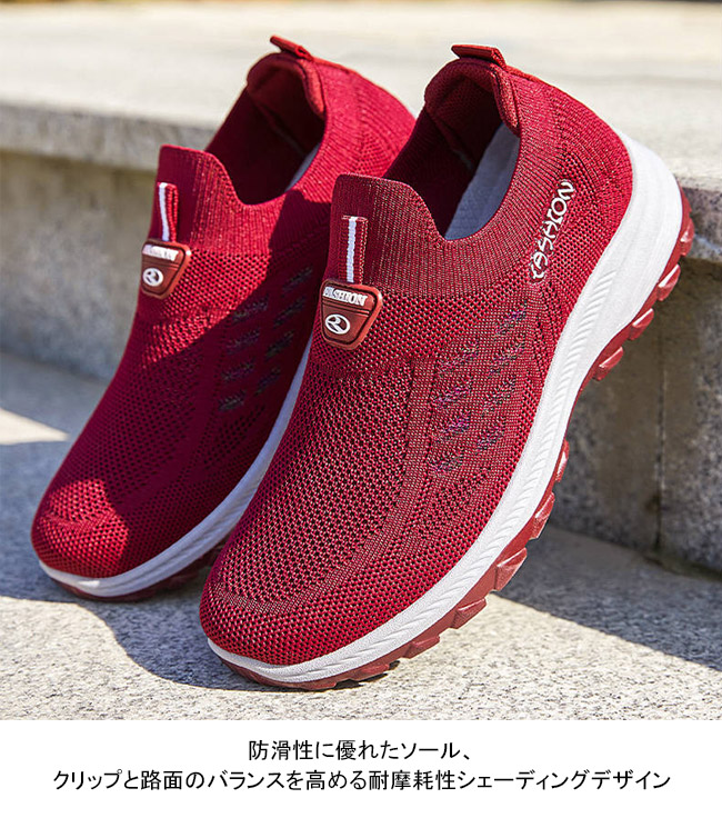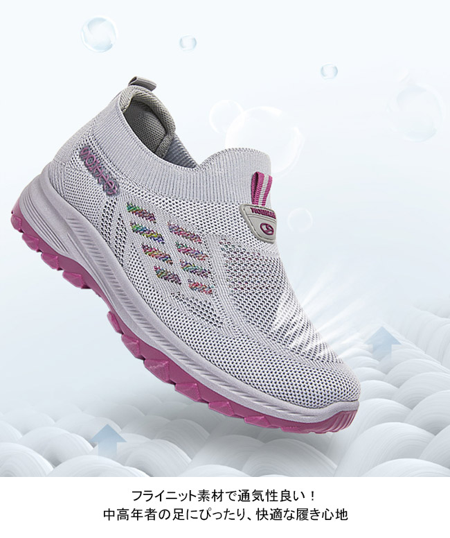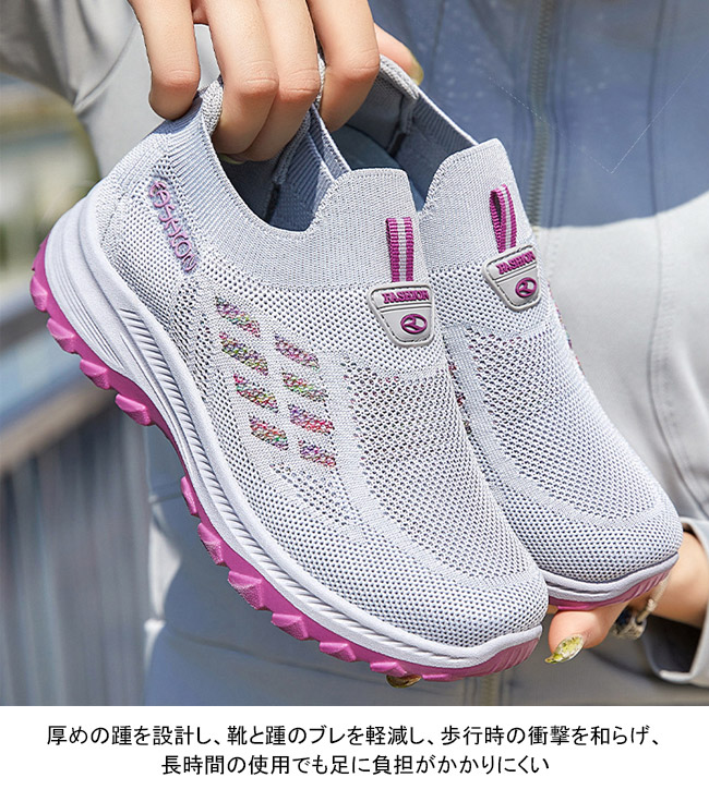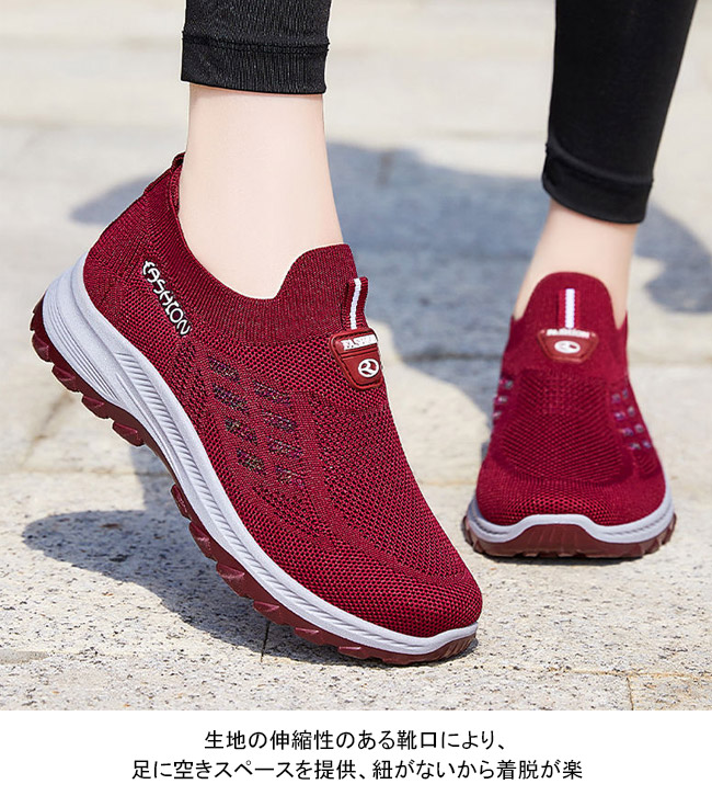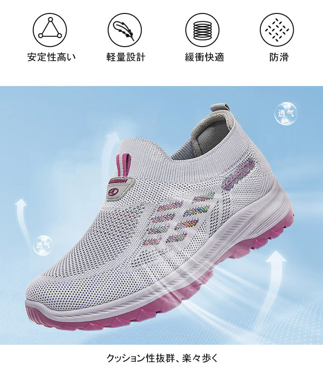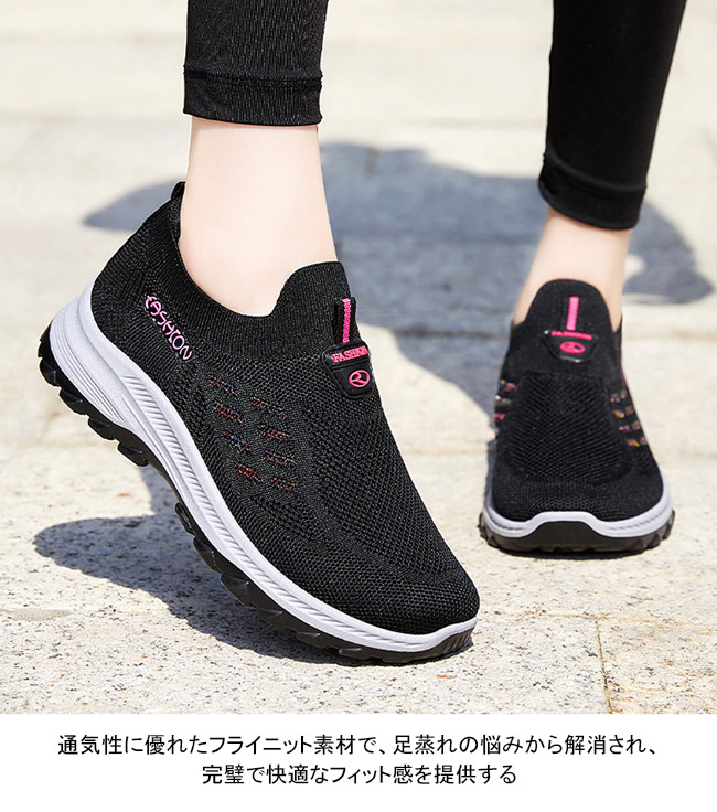 スニーカー シューズ レディース ニット フライニット ウォーキング 防滑 防摩耗 蒸れない 伸縮性 メッシュ ナースシューズ カジュアル おしゃれ 快適 フィット 軽量 衝撃吸収 散歩 クッション 柔らかい スリッポン