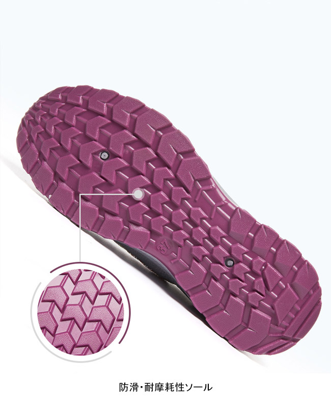 防滑性に優れたソール、クリップと路面のバランスを高める耐摩耗性シェーディングデザイン。