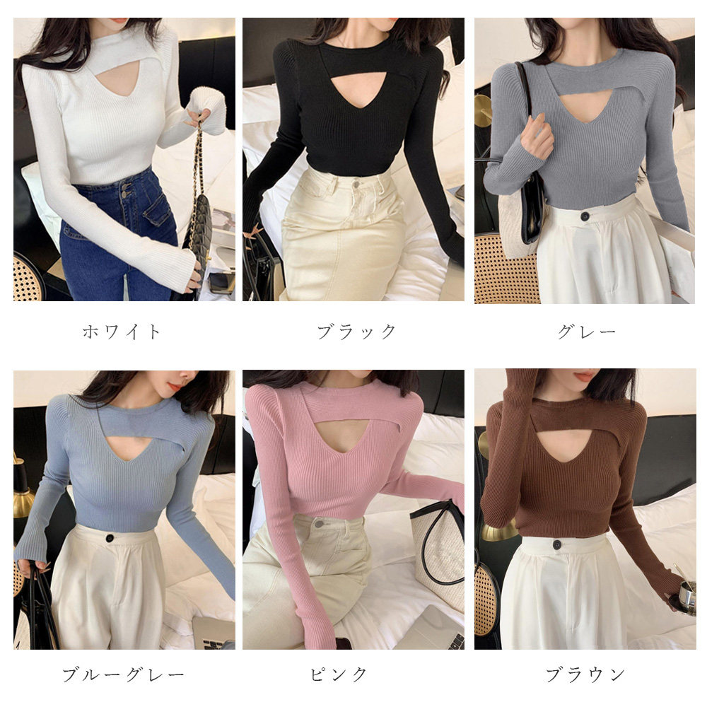 ニットセーター レディース 胸見せ インナーニット カジュアル 着やせ ニットウェア セクシー ニットソー プルオーバー