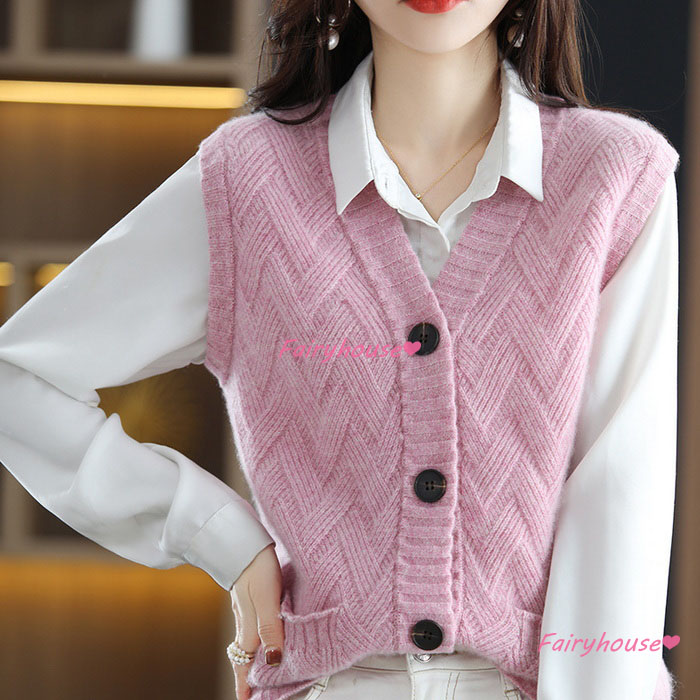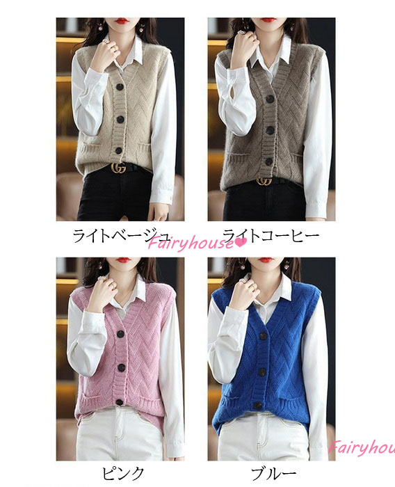 ニットベスト レディース 40代 春秋冬 ベストセーター ノースリープ 韓国風 秋服 ニットベストカーディガン 着痩せ カジュアル Vネック ショット丈トップス
