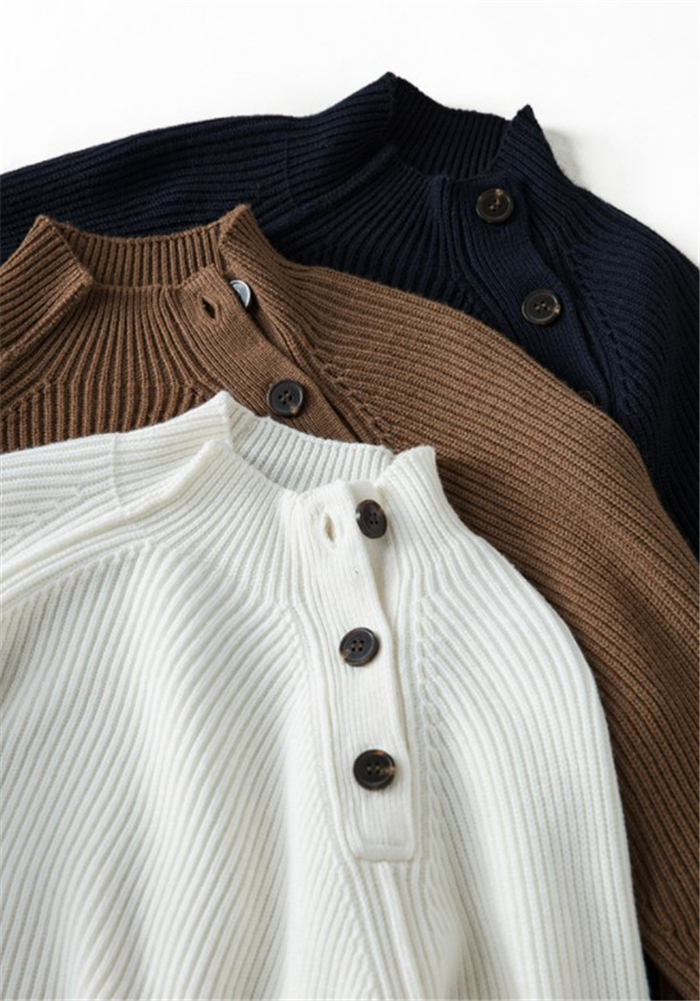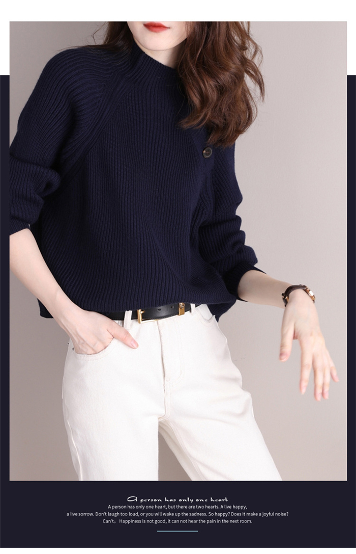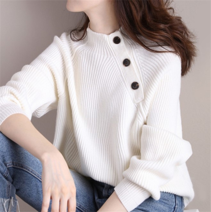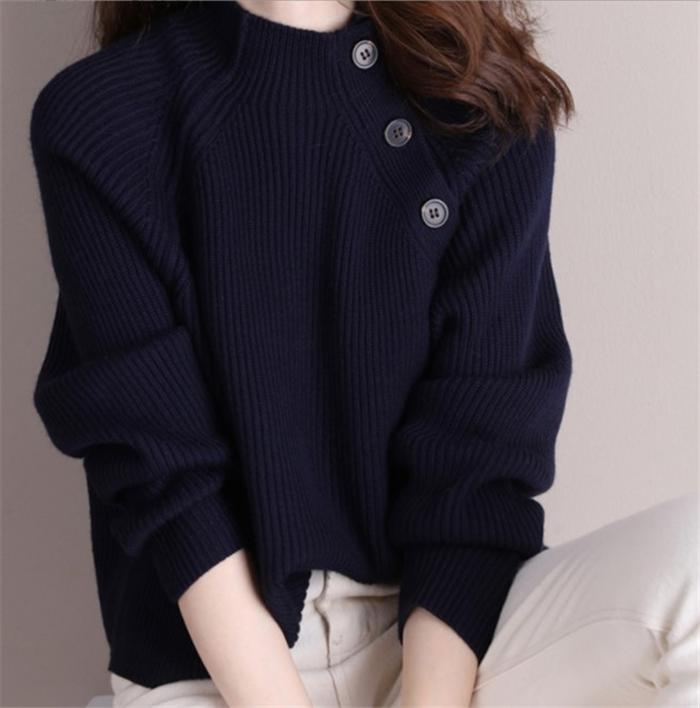 ニットセーター レディース 秋冬 40代 長袖トップス 無地 ハイネック カジュアル セーター ニットインナー ゆったり オシャレ プルオーバー 可愛い ボタン 大人