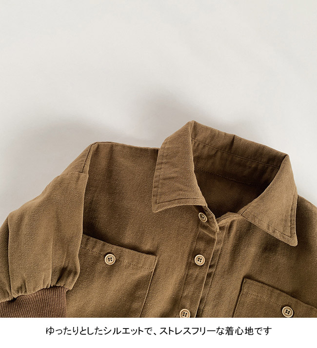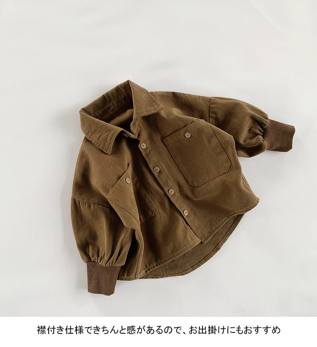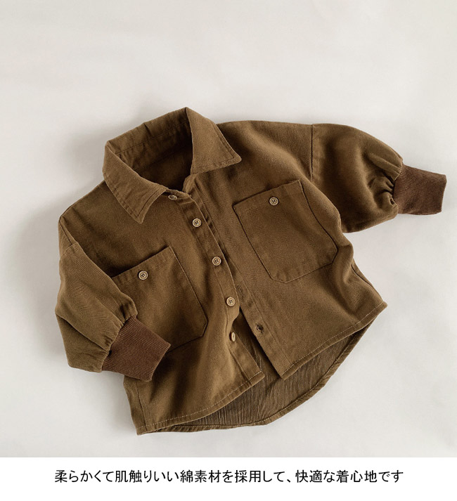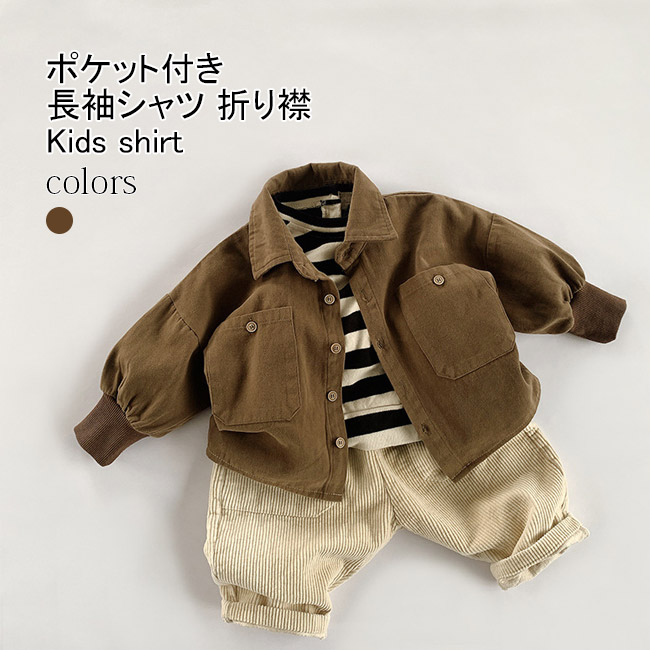 長袖シャツ キッズ ライトアウター 無地 折り襟 リブ袖口 前開き ラウンド裾 トップス カジュアル 前ボタン ポケット付き ゆったり シンプル 春秋 子供服 男児 女児 ジュニア ユニセックス コットン 襟入り 普段着 ブラウス アウトドア