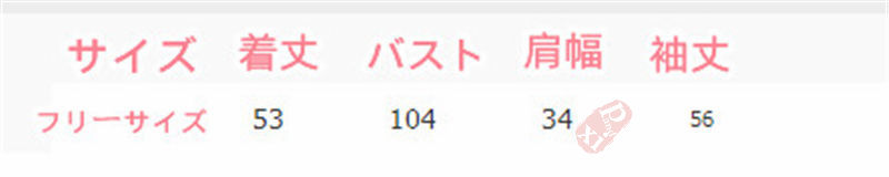 着丈:53cm バスト:104cm 袖丈:56cm 肩幅:34cm