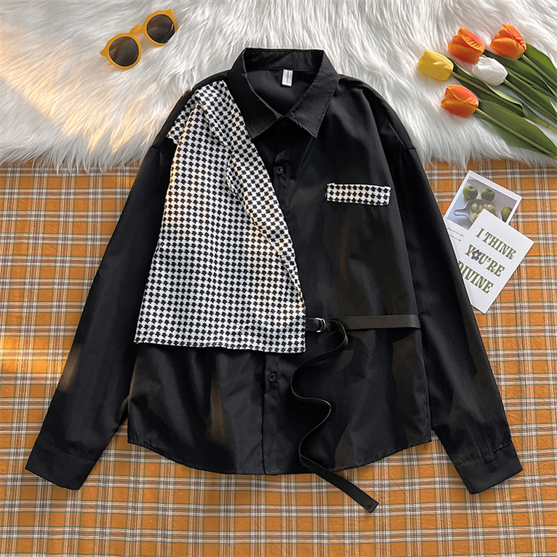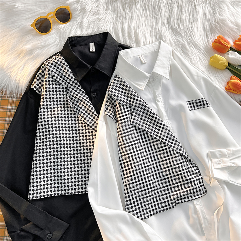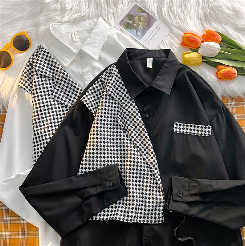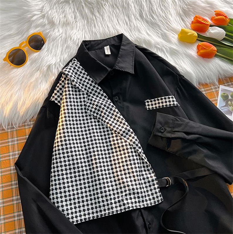 メンズ シャツ カジュアルシャツ 長袖 ヒップホップ ワーク 公演 春秋 上着 イベント ダンスウェア 発表会 クラブ白黒 男子トップス 千鳥柄 青少年