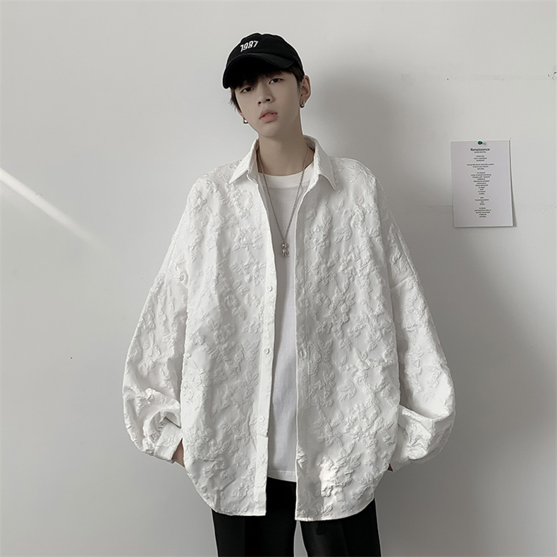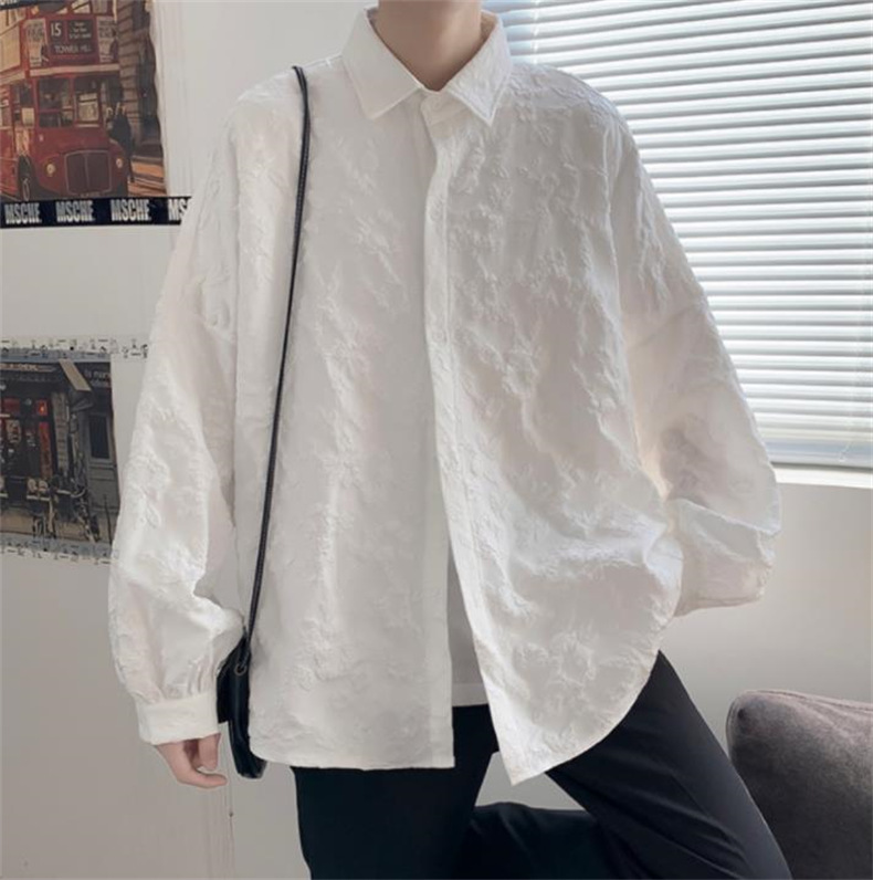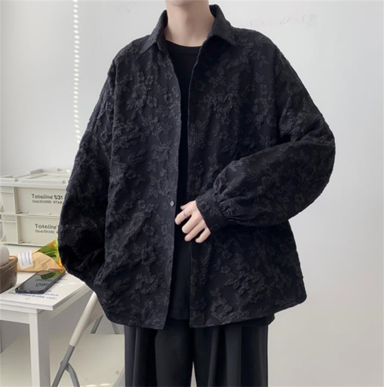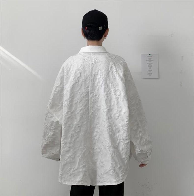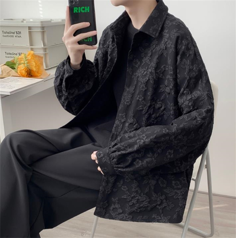 メンズ シャツ カジュアルシャツ 長袖 花柄 ワーク 春秋 通勤 アウター 青少年 白黒 ブラック通学 普段着 男子トップス 上着 ワイシャツ