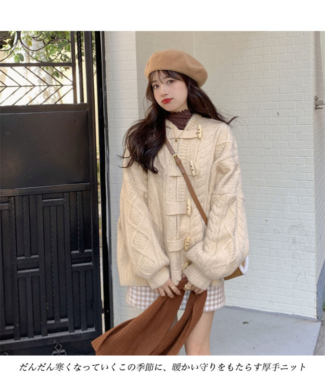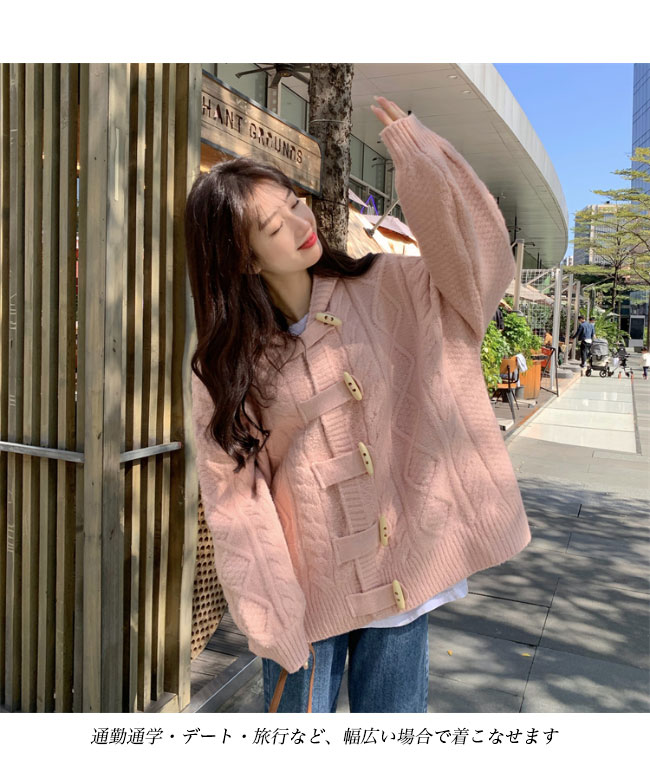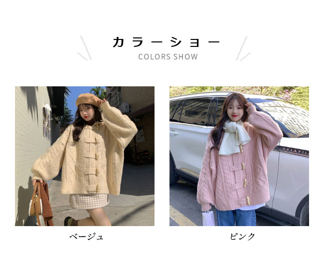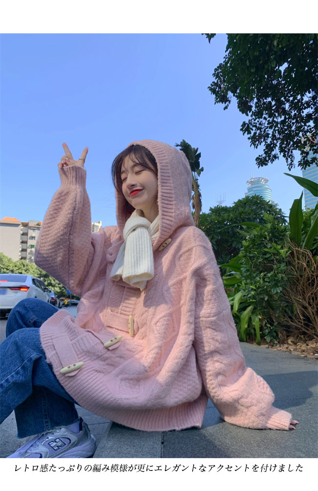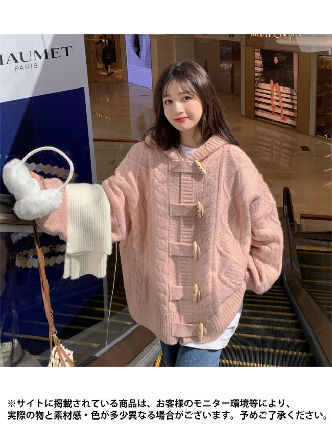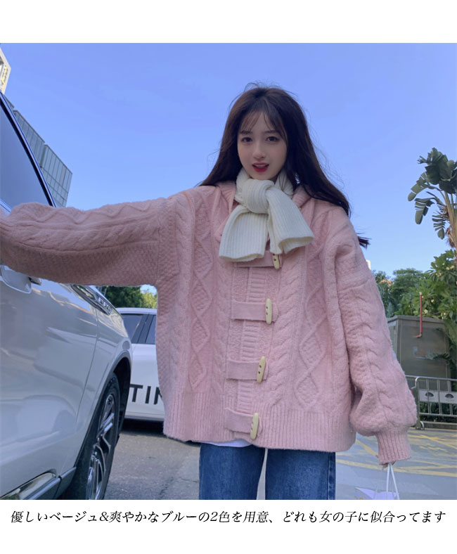 ニットカーディガン 厚手 レディース ニットパーカー ダッフルボタン カーディガン フード付き ケーブル編み ゆったり カーデ 暖かい 厚手ニット パーカー ボタンダウン 秋 冬 春 アウター ニットコート ニットジャケット ベージュ ピンク