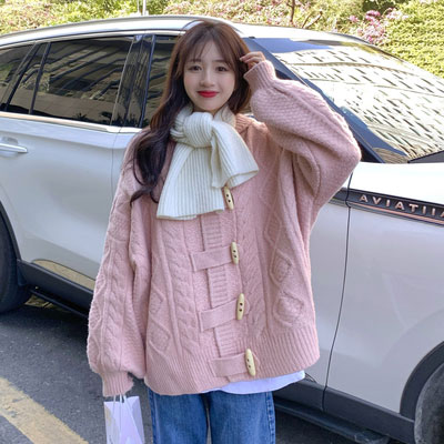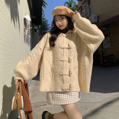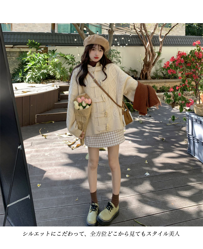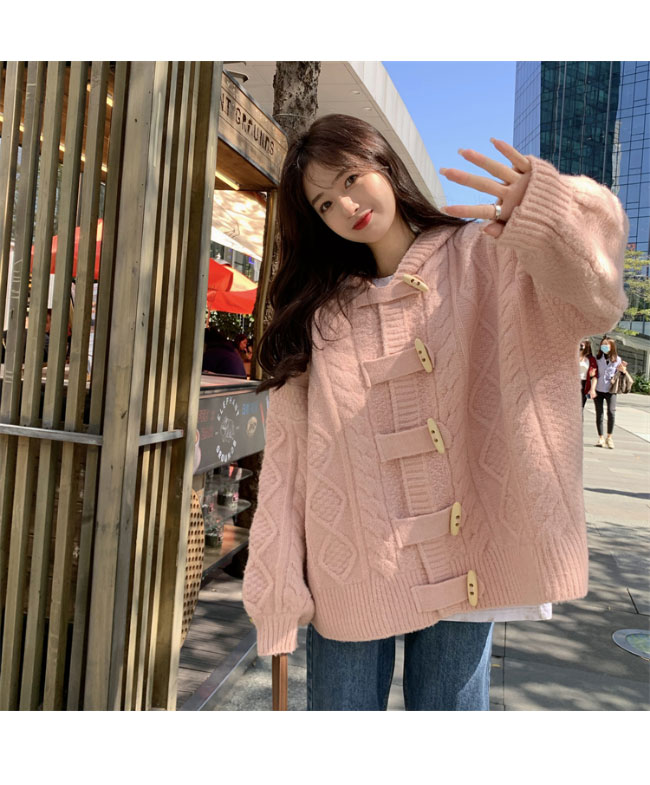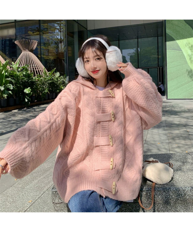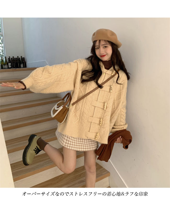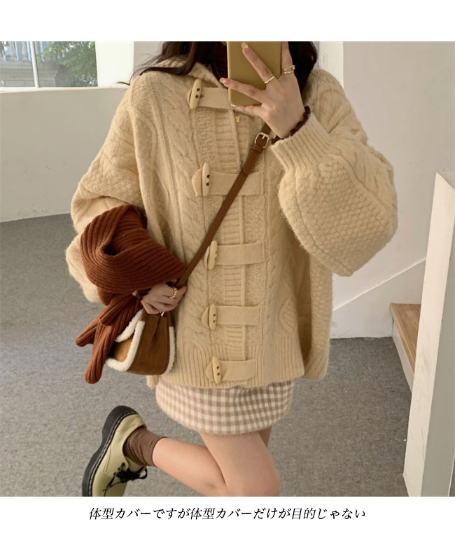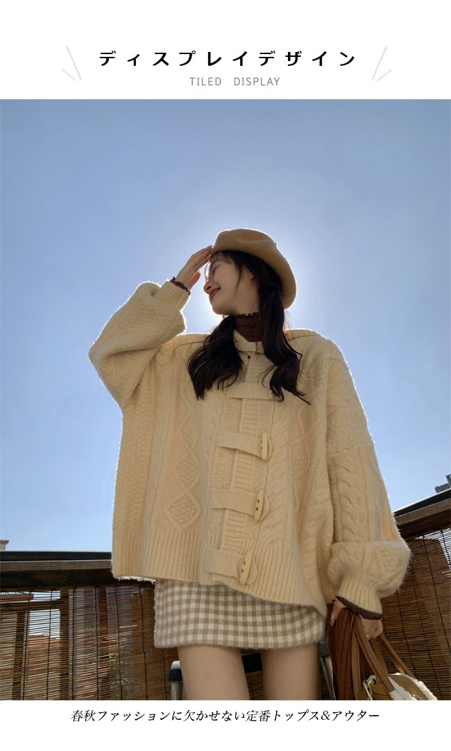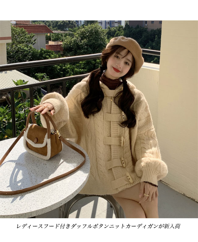 レディースフード付きダッフルボタンニットカーディガンが新入荷