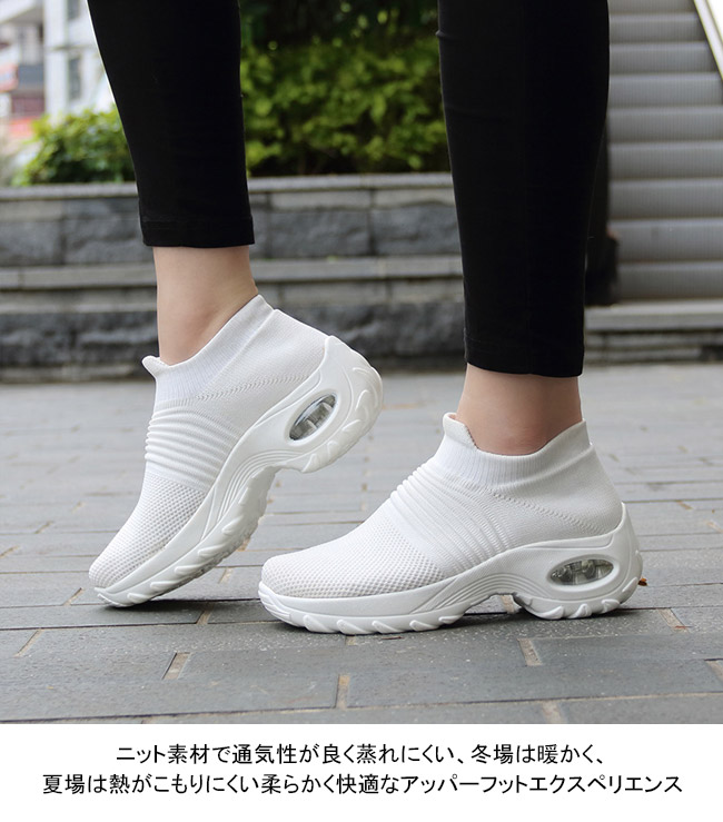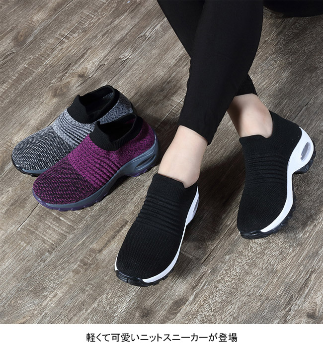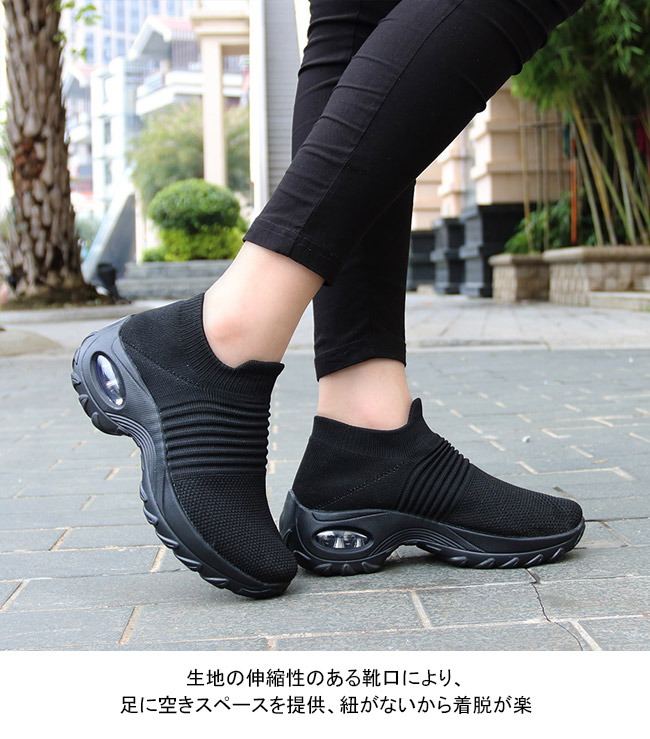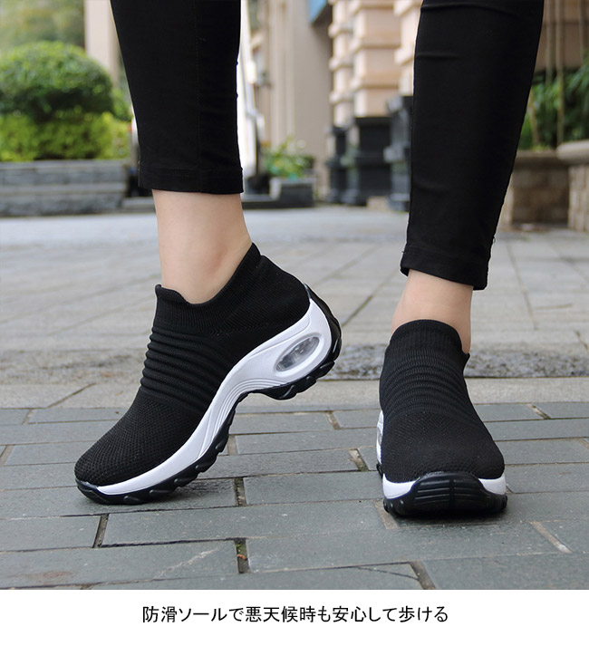 スニーカー シューズ レディース ニット ウォーキング 防滑 防摩耗 蒸れない 伸縮性 カジュアル おしゃれ 快適 軽量 衝撃吸収 柔らかい スリッポン ランニング