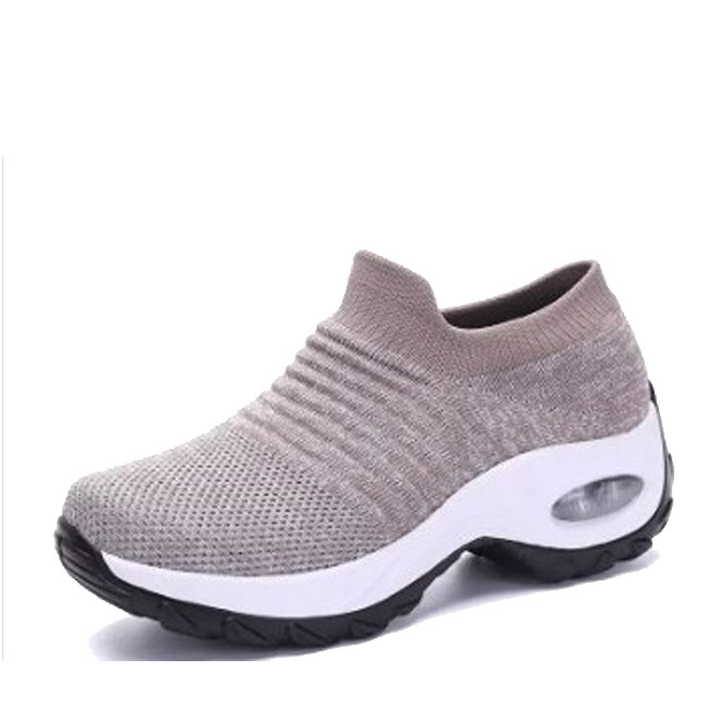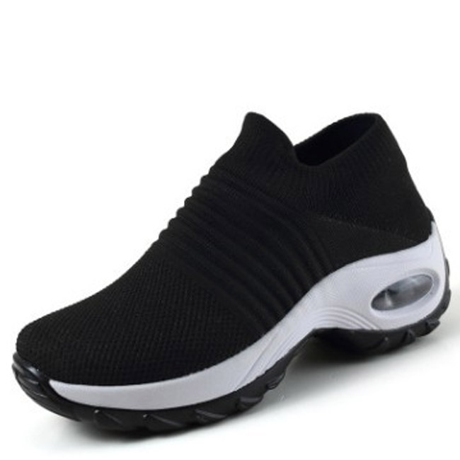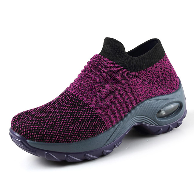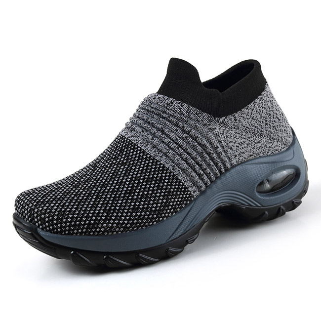 生地の伸縮性のある靴口により、足に空きスペースを提供、紐がないから着脱が楽。