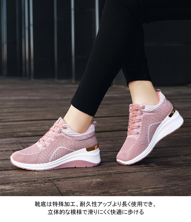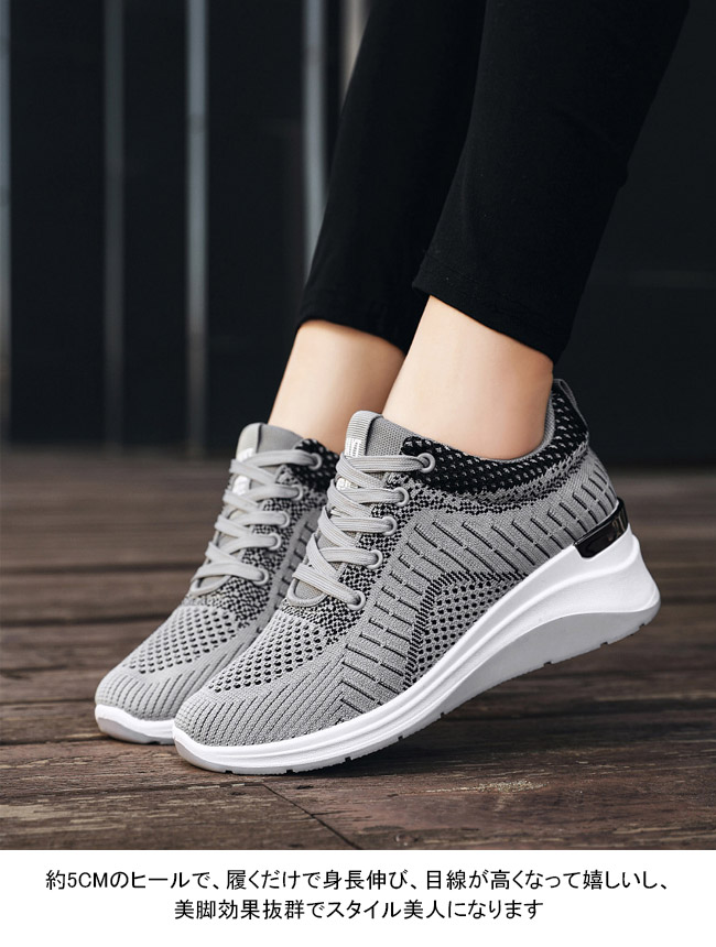 スニーカー レディース 厚底 5CM 防滑 滑りにくい 防摩耗 蒸れない 伸縮性 メッシュ カジュアル おしゃれ 快適 フィット 柔らかい 通学 通勤 衝撃吸収 ランニング 軽量 歩きやすい スタイルアップ 美脚 身長 おしゃれ