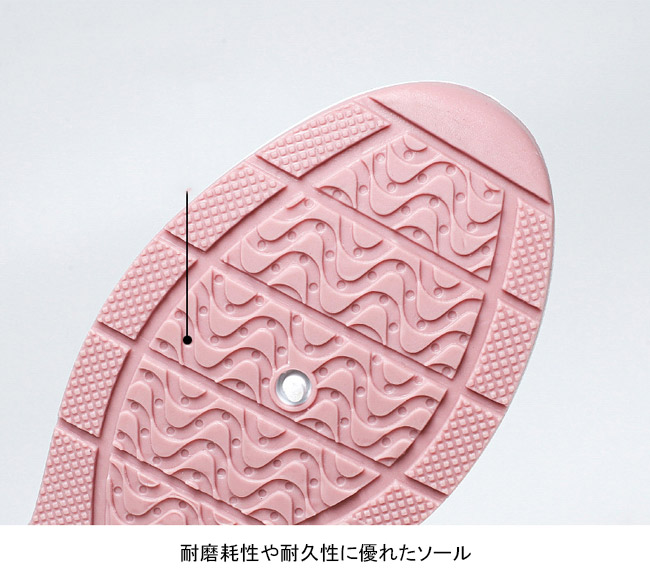 靴底は特殊加工、耐久性アップより長く使用でき、立体的な模様で滑りにくく快適に歩ける。