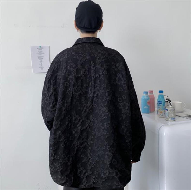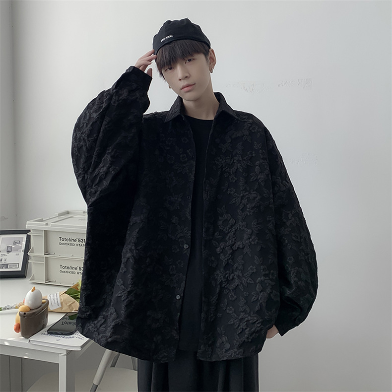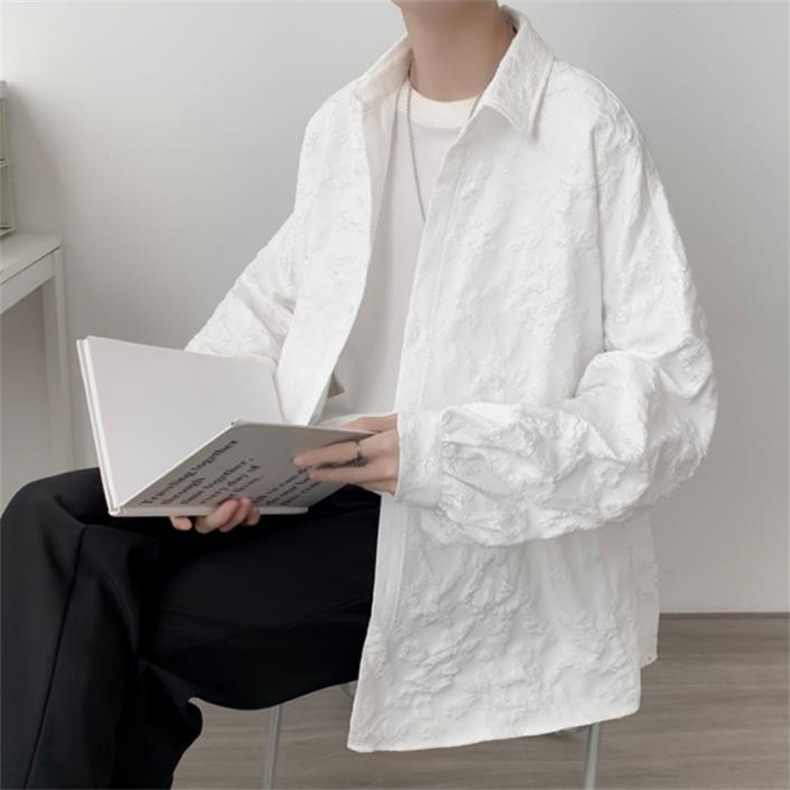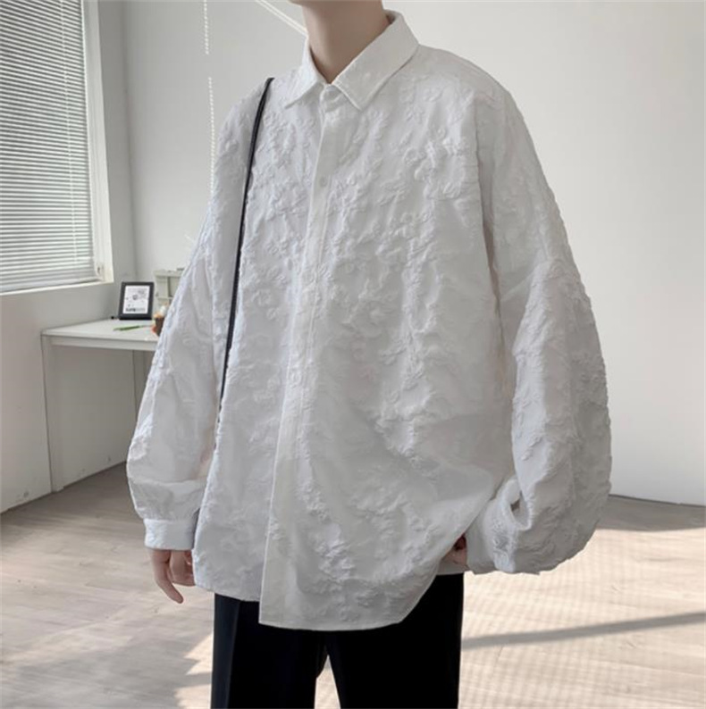 メンズ シャツ カジュアルシャツ 長袖 花柄 ワーク 白黒 上着 通勤 ブラック通学 春秋 普段着 ワイシャツ 青少年 男子トップス アウター