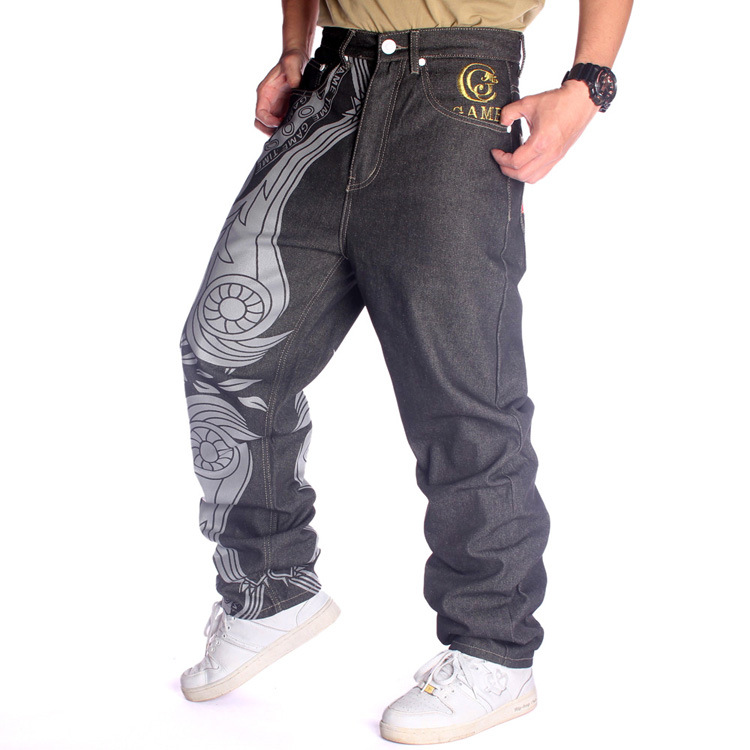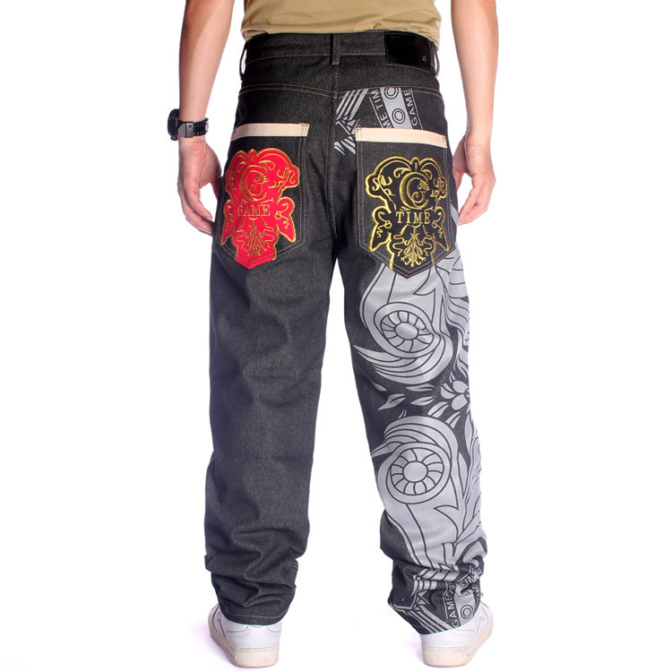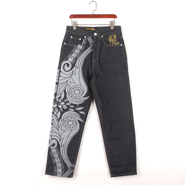 デニムパンツ ジーンズ 大きいサイズ メンズ ルーズストレート 個性 オリジナルデザイン ゆったり 太め 刺繍入り プリント ストリート系 HIPHOP おしゃれ