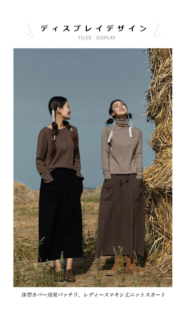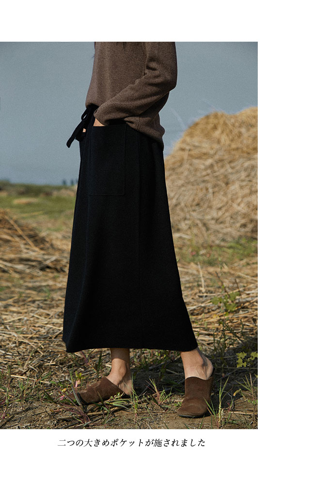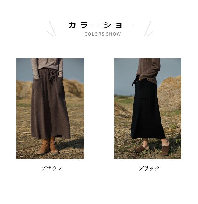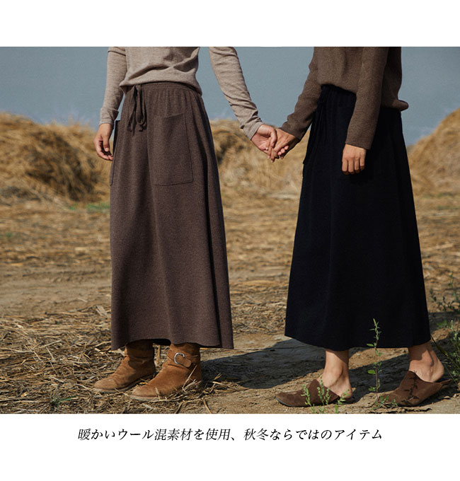 ニットスカート マキシ レディース スカート 秋冬 ウール混 マキシスカート 体型カバー ポケット付き ニット 厚手 ロングスカート Aライン 無地 レトロ おしゃれ ボトムス ウエストゴム Aラインスカート ブラウン ブラック