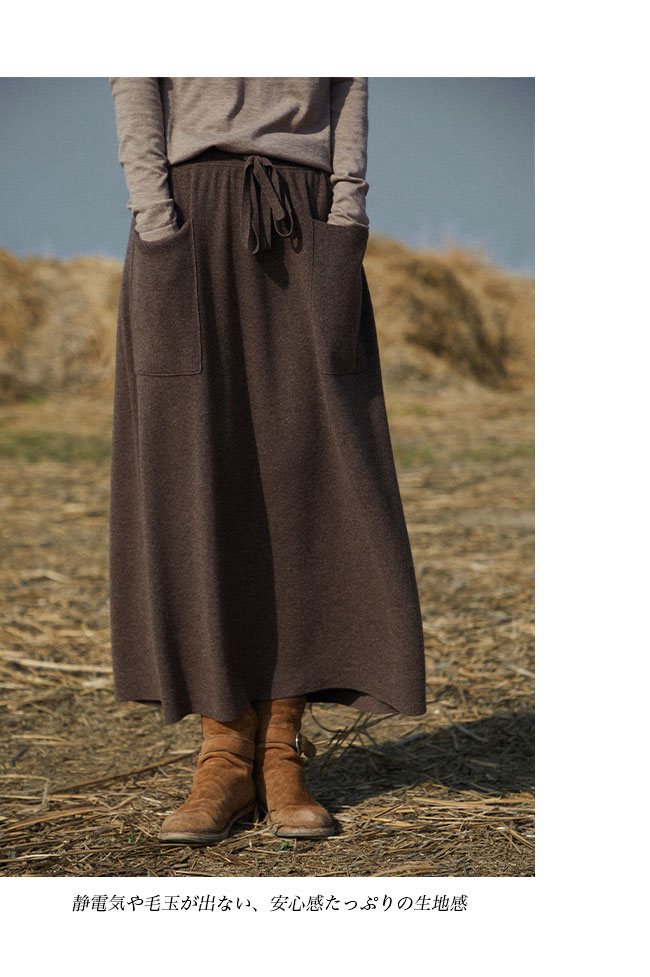 体型カバー効果バッチリ、レディースマキシ丈ニットスカート