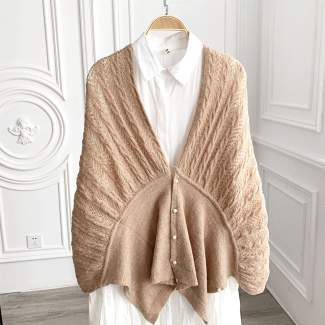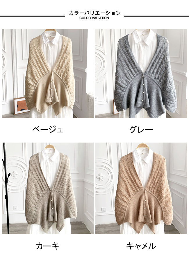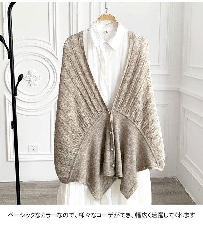 カーディガン レディース ニット ポンチョ ボレロ マント ストール ショール 足掛け UV対策 フェイクカシミア パール ボタン 羽織り 冷房対策 薄手 無地 紫外線 冷房対策 おうちコーデ お洒落 エレガント 可愛い