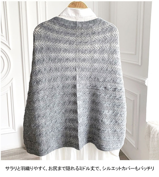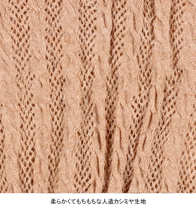 やや大きめの編み目が魅力で、女性らしいこなれたムードが漂います。