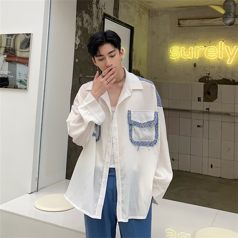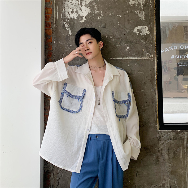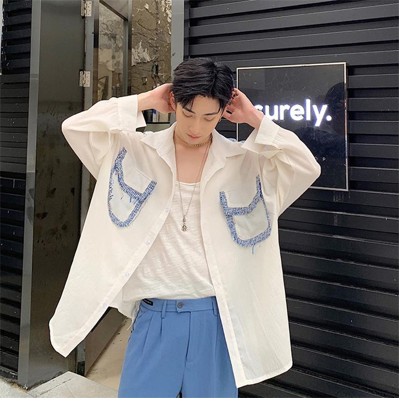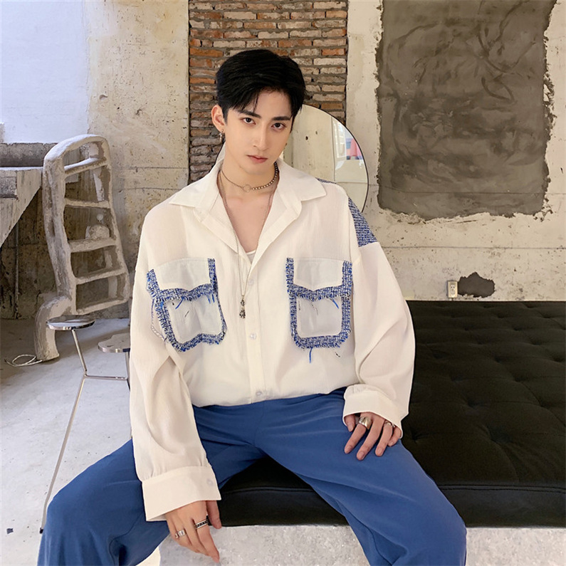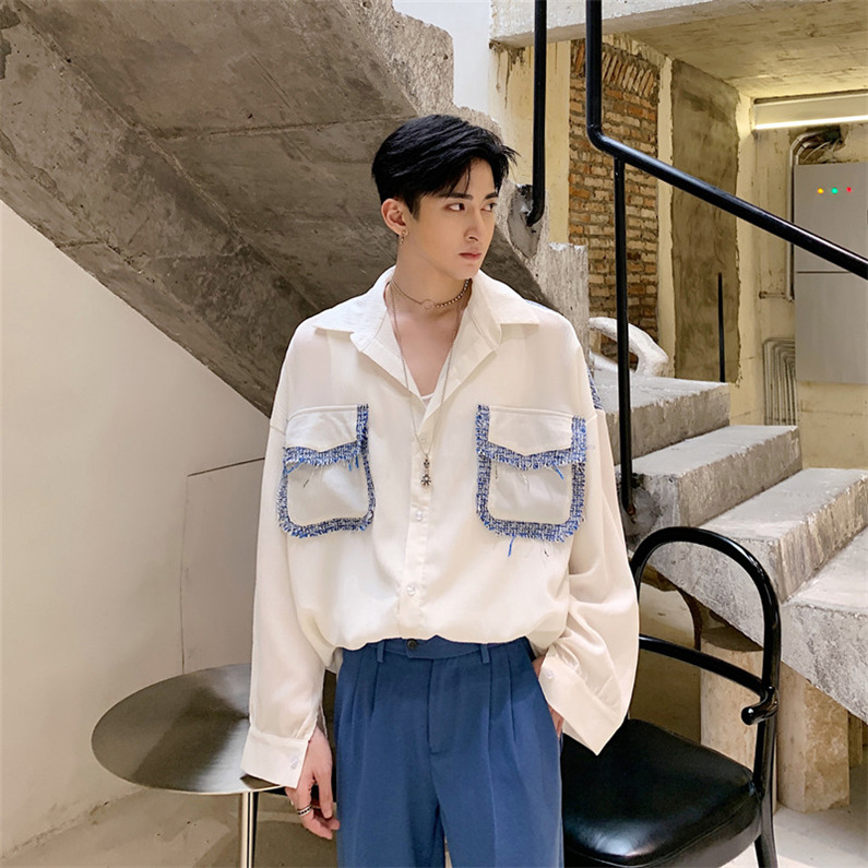 メンズ シャツ カジュアルシャツ 長袖 ワイシャツ ポケット クラブ オシャレ 男子トップス ボタン ダンスウェア ホワイト 春秋 公演 発表会 ゆったり