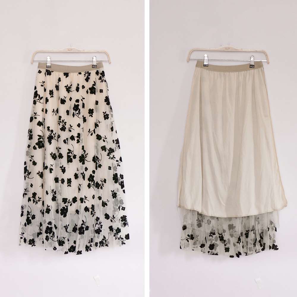 スカート丈:約80CM 裏地丈:約60CM ウエスト(ゴム仕様):約58-70CM ヒップ:約150CM