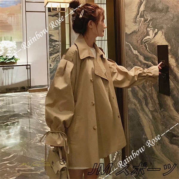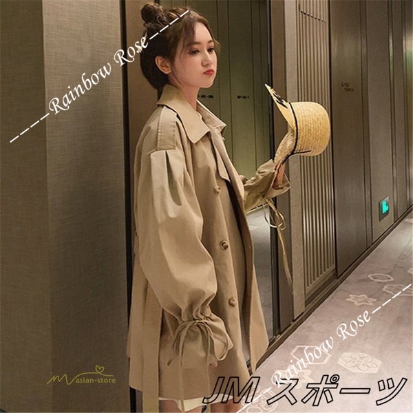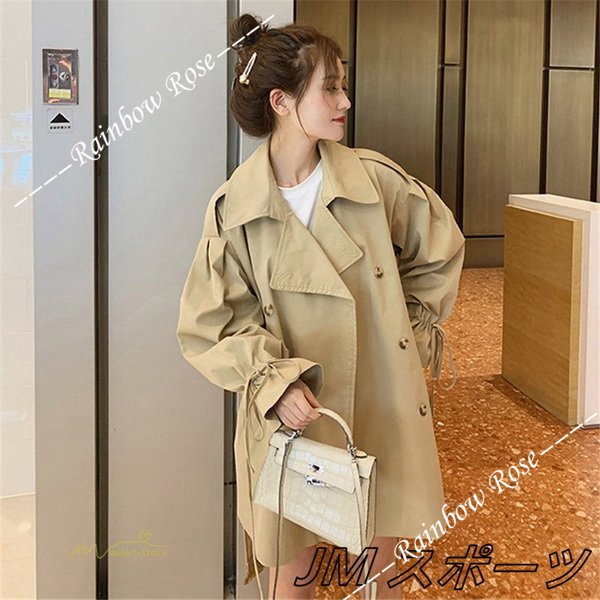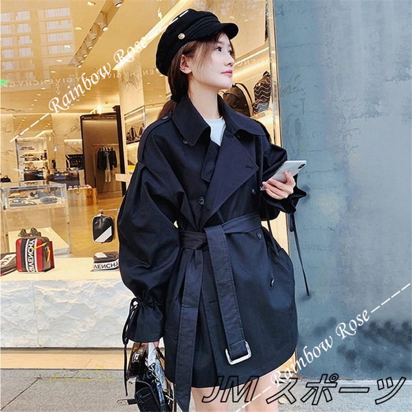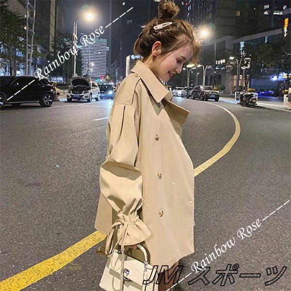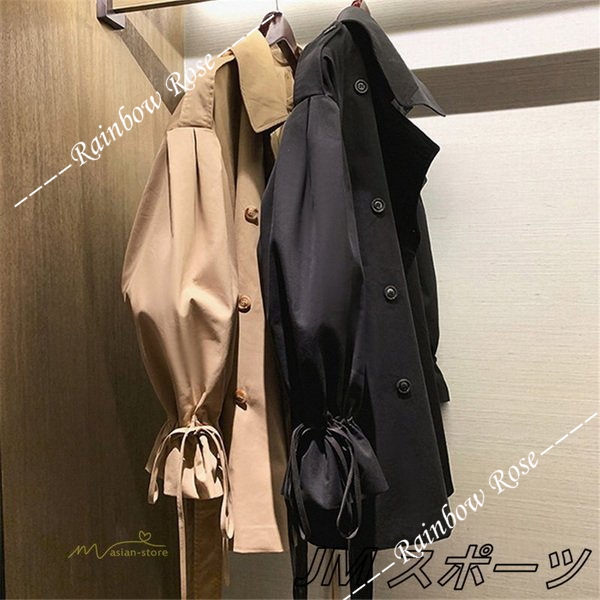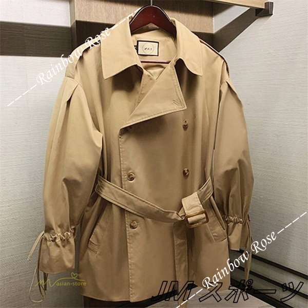 トレンチコート レディース スプリングコート アウター ベルスリーブ トップス ショート丈 ファッション ガーリー トレンド カジュアル ゆったり 格好いい