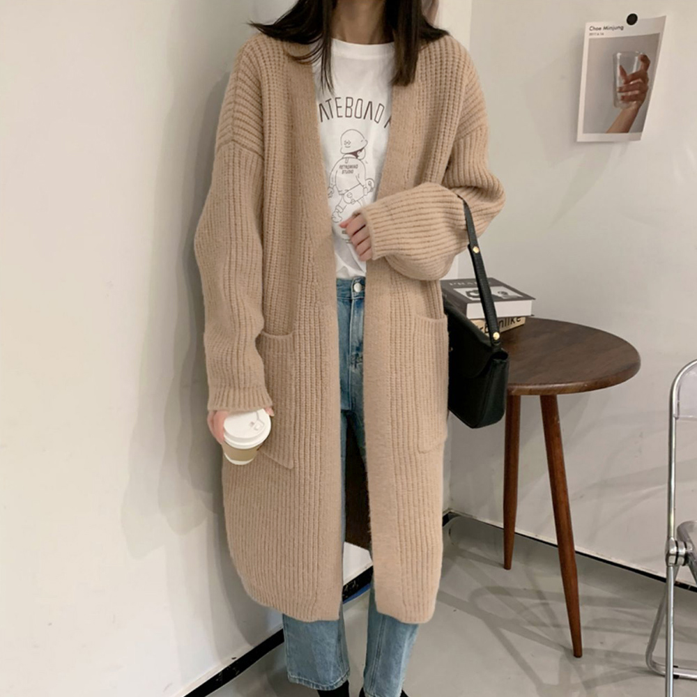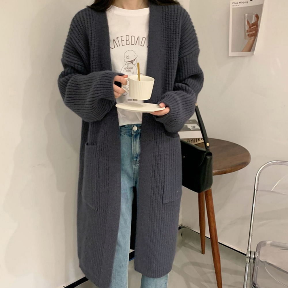ボタン無し 長袖 ロングカーディガン ドロップショルダー アウター ゆったり 羽織り カジュアル トッパーカーディガン