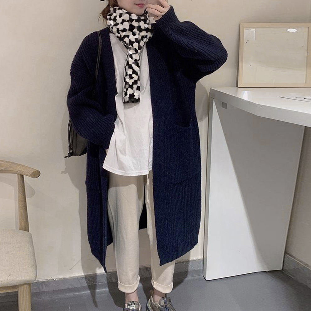 リラックススタイルから通勤スタイルまで使える、優秀なロングニットカーディガン