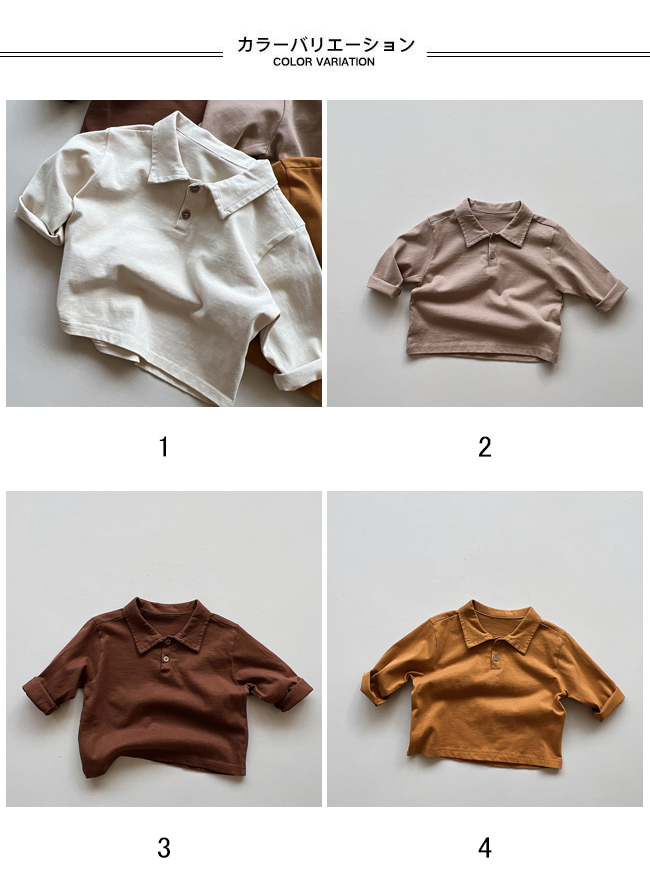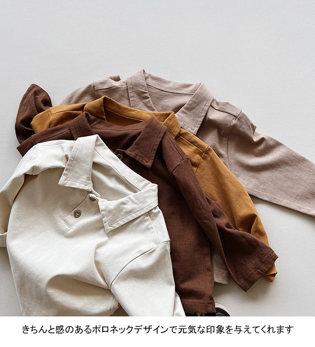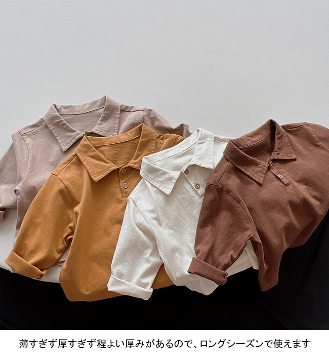 長袖シャツ キッズ カットソー 無地 ポロネック トップス カジュアル ボタン付き 着やすい ゆったり シンプル 春秋 通園 通学 子供服 男児 女児 ジュニア コットン ブラウス 襟付き ポロシャツ 普段着 80CM 90CM 100CM 110CM 120CM 130CM