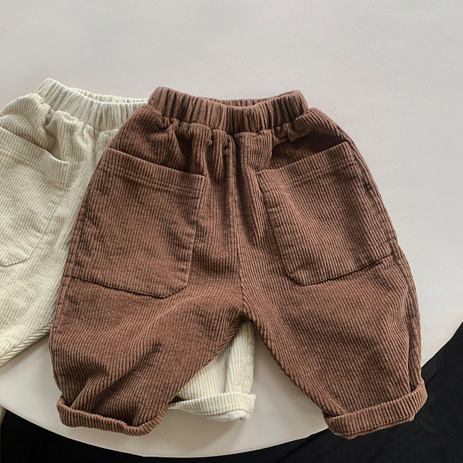 長ズボン キッズ ロングパンツ 無地 コーデュロイ ストレート ボトムス カジュアル ウエストゴム ポケット付き ゆったり 動きやすい シンプル 春秋 通園 通学 お出掛け 子供服 男児 女児 ジュニア 男女兼用 イージーパンツ