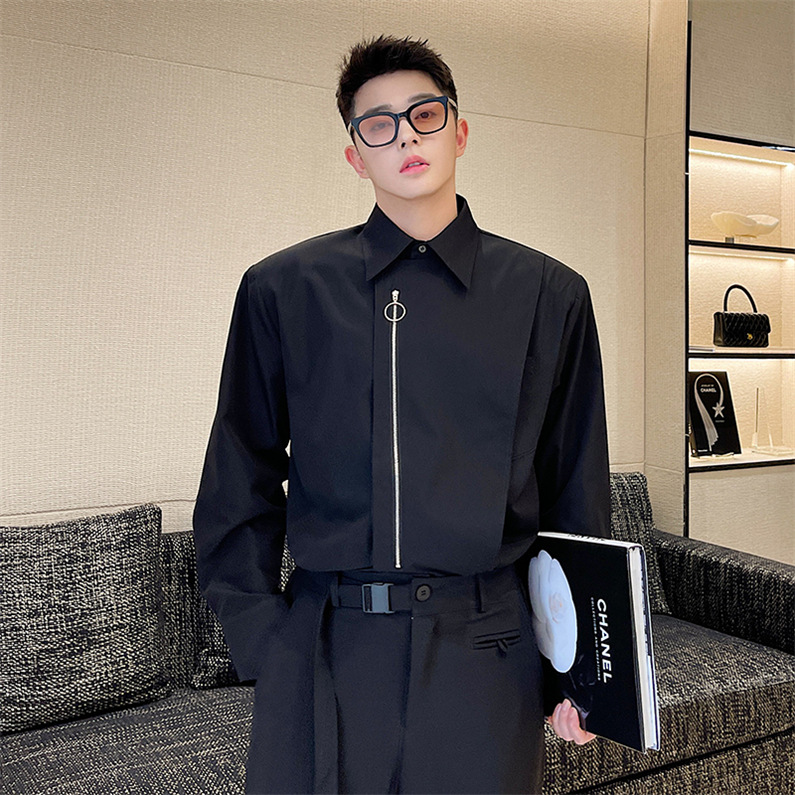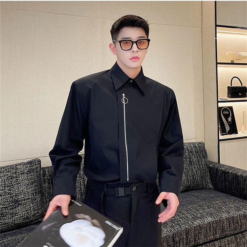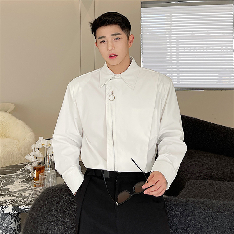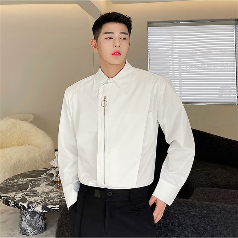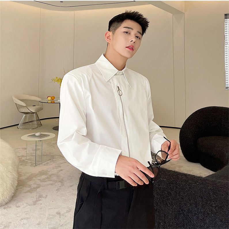 メンズ シャツ カジュアルシャツ 長袖 ホワイト 上着 男子トップス チャック 公演 ブラック クラブ ダンスウェア 無地 オシャレ 発表会 春秋