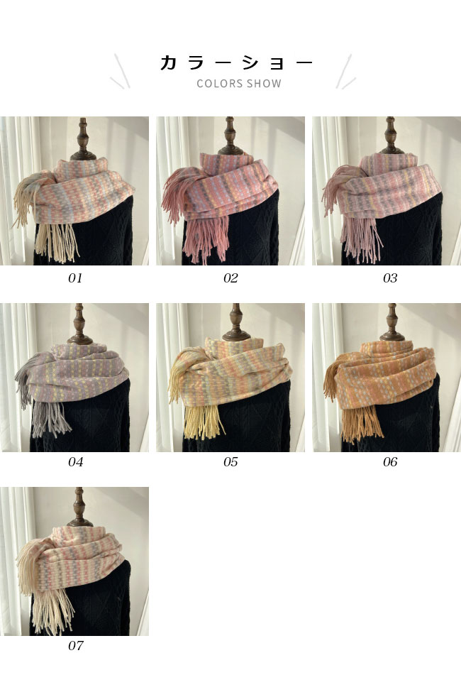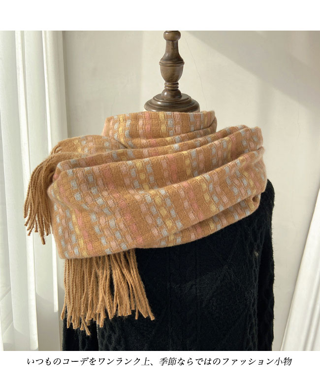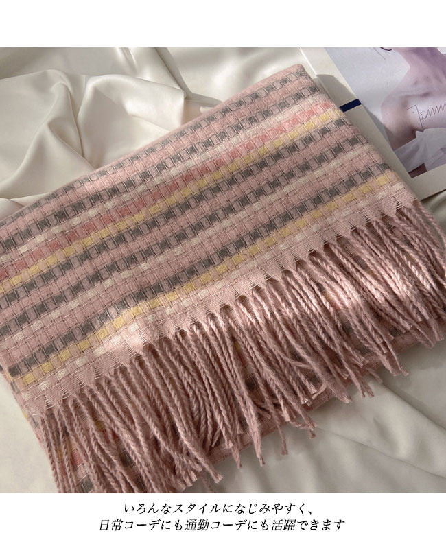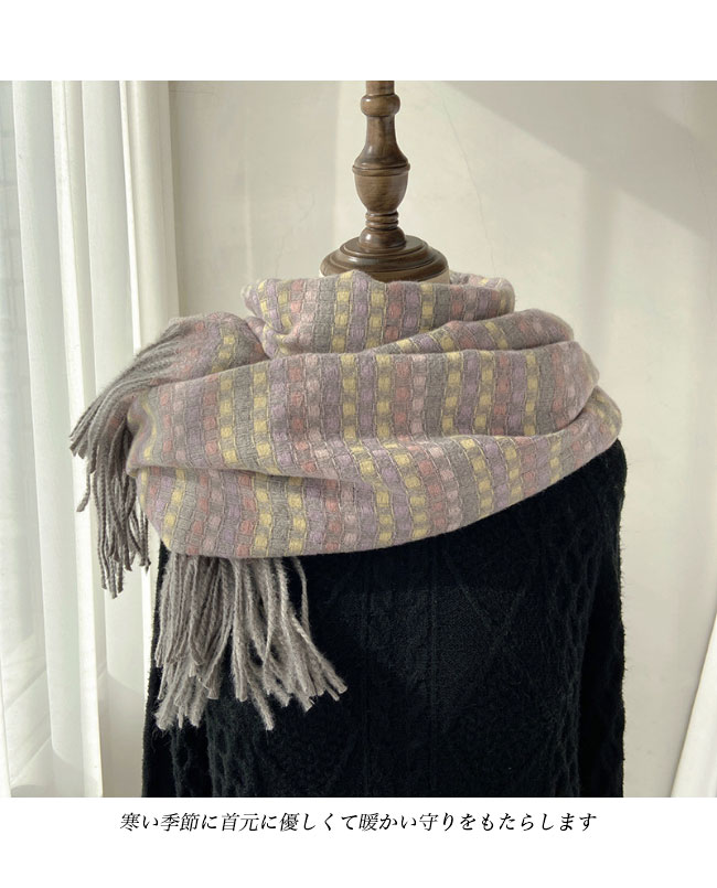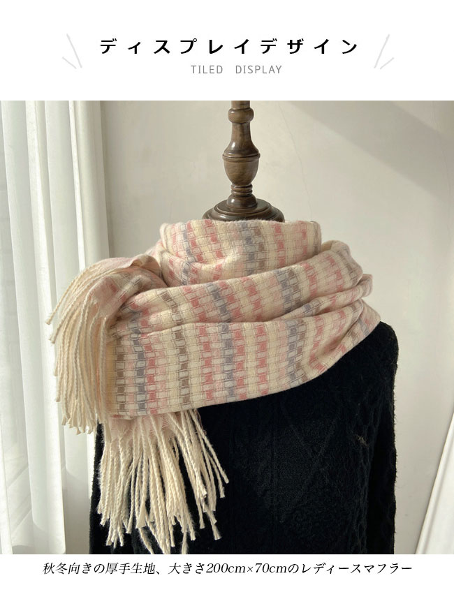 秋冬向きの厚手生地、大きさ200CM×70CMのレディースマフラー